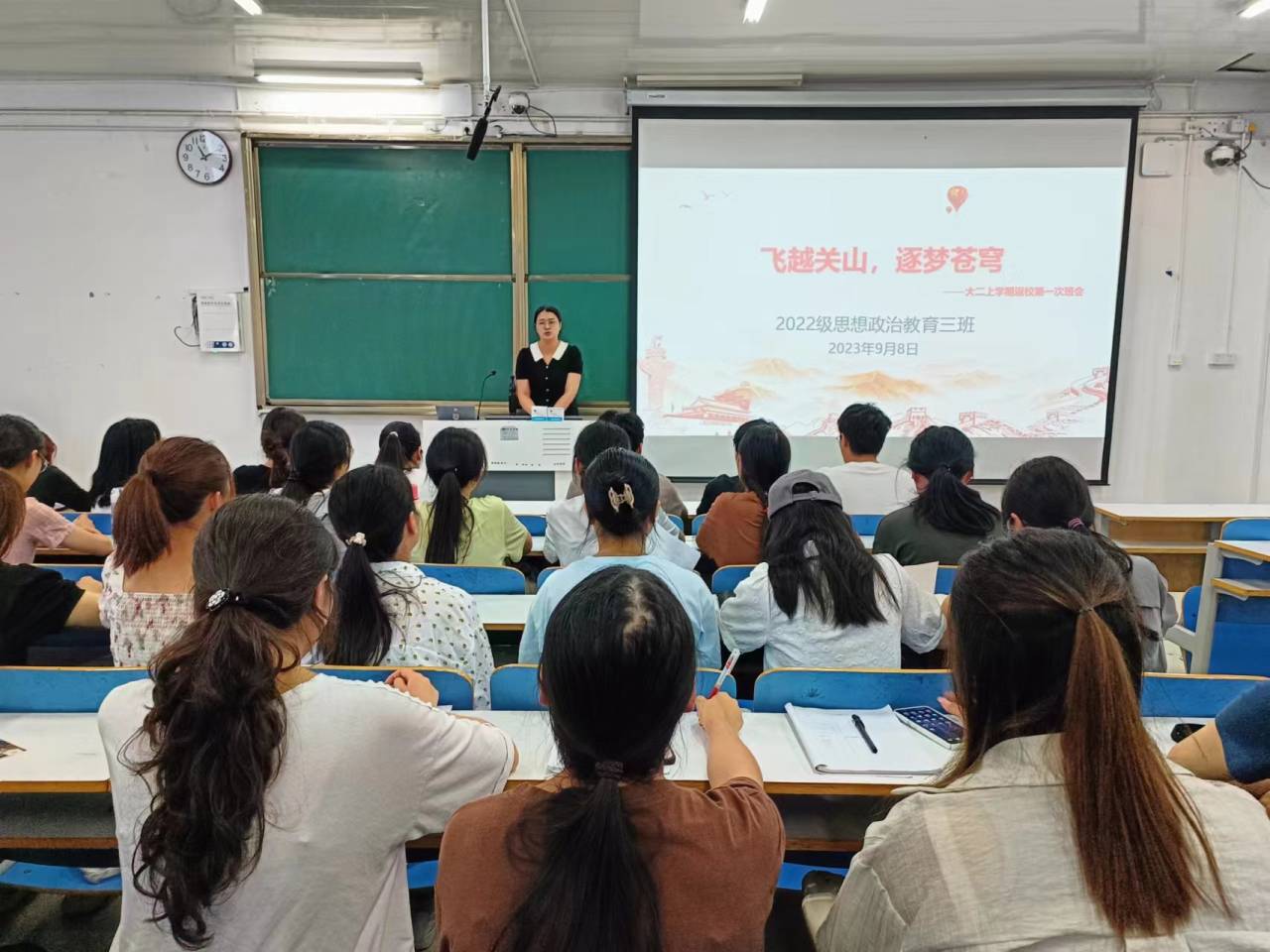 9月8日上午,2026年世界杯官网2022级思想政治教育三班在社科楼514教室召开新学期新征程“飞越关山,逐梦苍穹”主题班会。公司2022级思想政治教育三班班主任吴梦云和三班全体成员共同参加此次班会。班会由班长余浩洋主持。