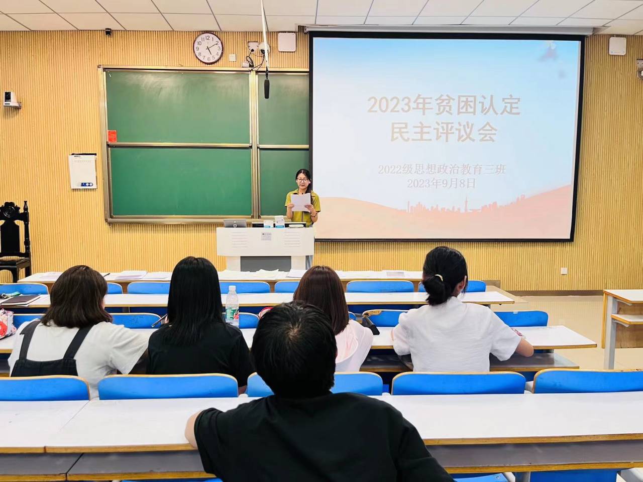 为确保家庭经济困难员工“应助尽助”,9月8日下午,2026年世界杯官网2022级思想政治教育三班在社科楼515教室召开2023年贫困认定民主评议会。公司2022级思想政治教育三班班主任吴梦云、8名员工评选代表和两名班委成员共同参与评议会。会议由班主任吴梦云主持。