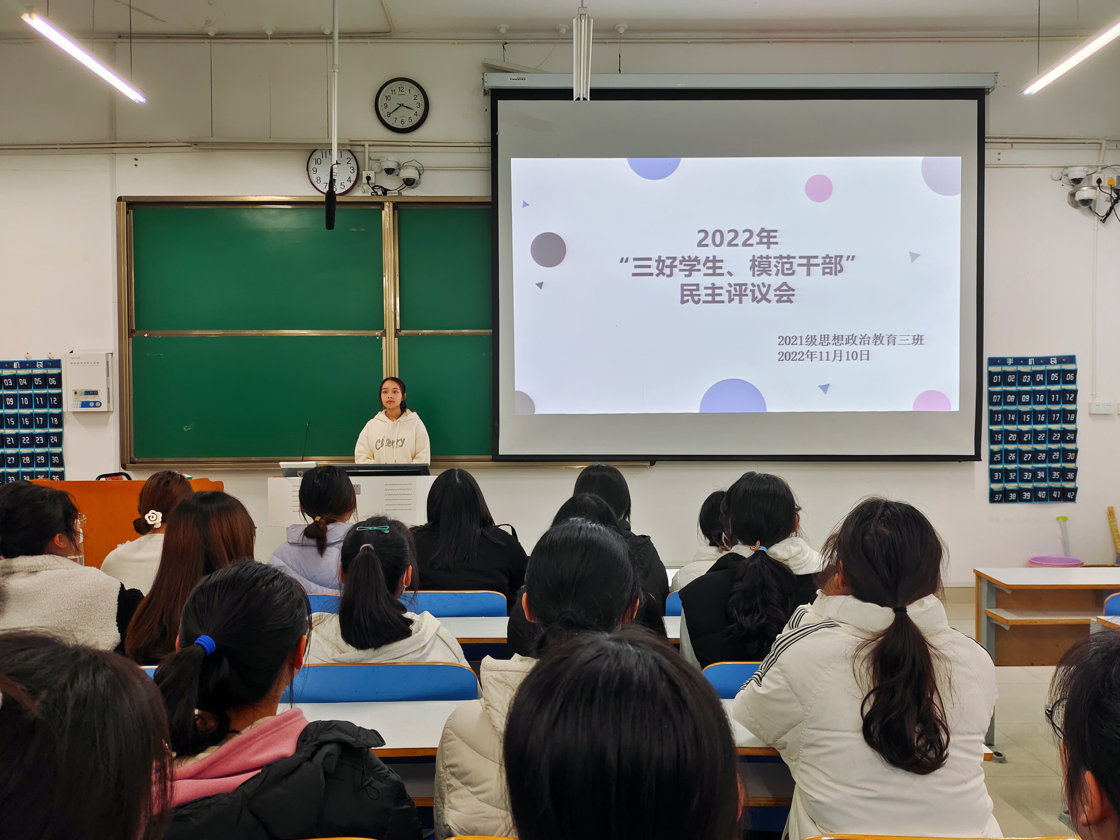 11月10日下午,2026年世界杯官网2021级思想政治教育三班在社科楼514召开2022年“三好员工、模范干部”民主评议会。2026年世界杯官网2021级思想政治教育三班全体成员参与此次会议。会议由团支书王岚霄主持,王岚霄任检票员,陈笑宇任记录员。