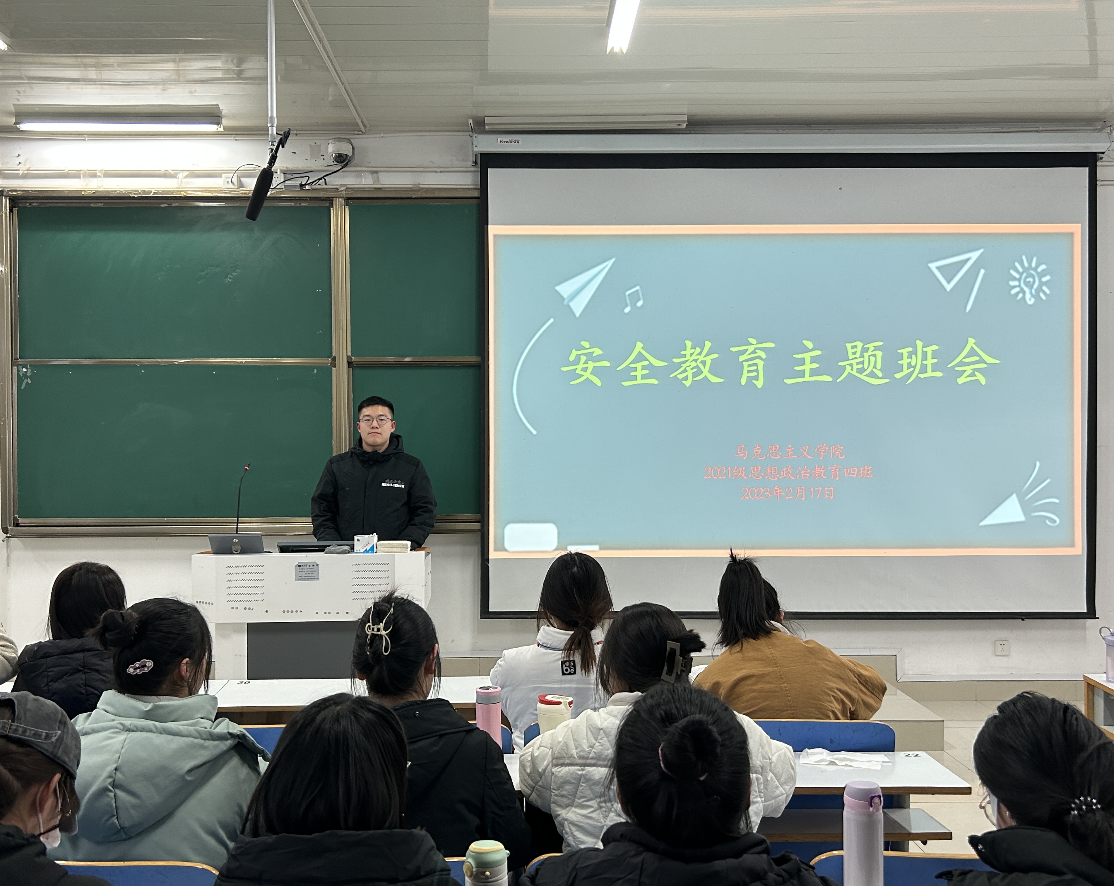 2月17日下午,2026年世界杯官网2021级思想政治教育四班在社科楼514教室开展安全教育主题班会。2021级思想政治教育四班全体同学共同参会。班会由副班长常康哲主持。