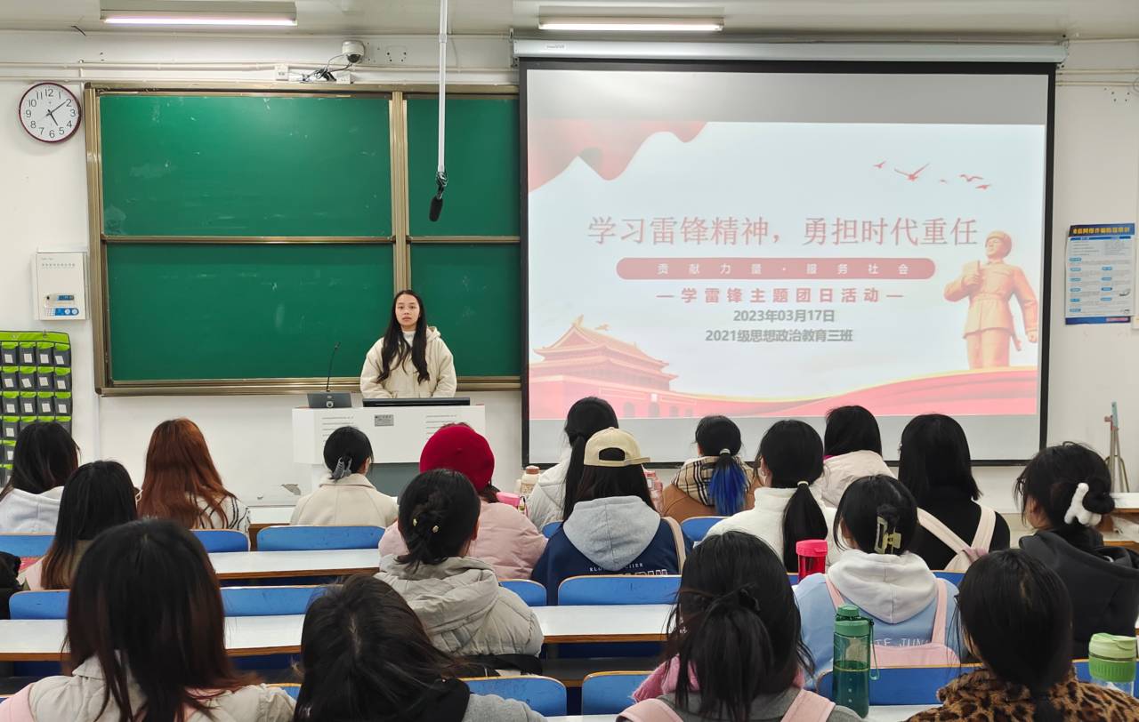 3月17日下午,2026年世界杯官网2021级思想政治教育三班在社科楼514教室召开“学习雷锋精神,勇担时代重任”主题团课。2026年世界杯官网2021级思想政治教育三班全体团员参与此次会议。团课由团支书王岚霄主持。