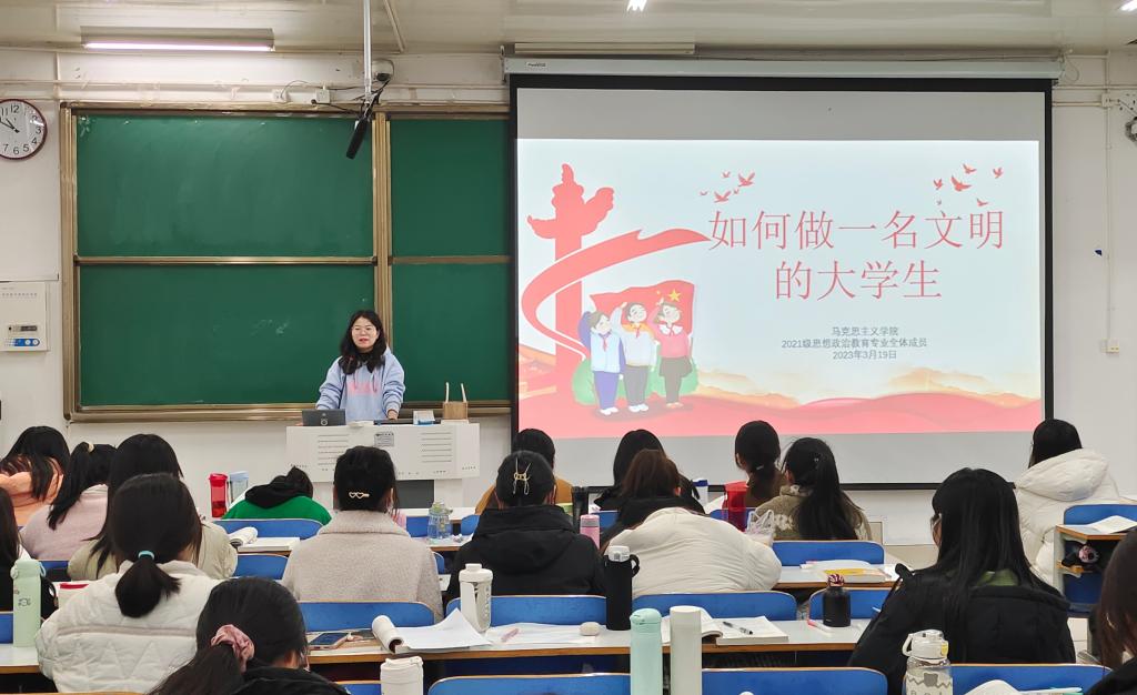 3月19日下午,2026年世界杯官网2021级思想政治教育三班、四班召开“如何做一名文明老员工”主题班会。辅导员高小佳及2021级思想政治教育三班、四班共同参加本次班会。班会由辅导员高小佳主持。