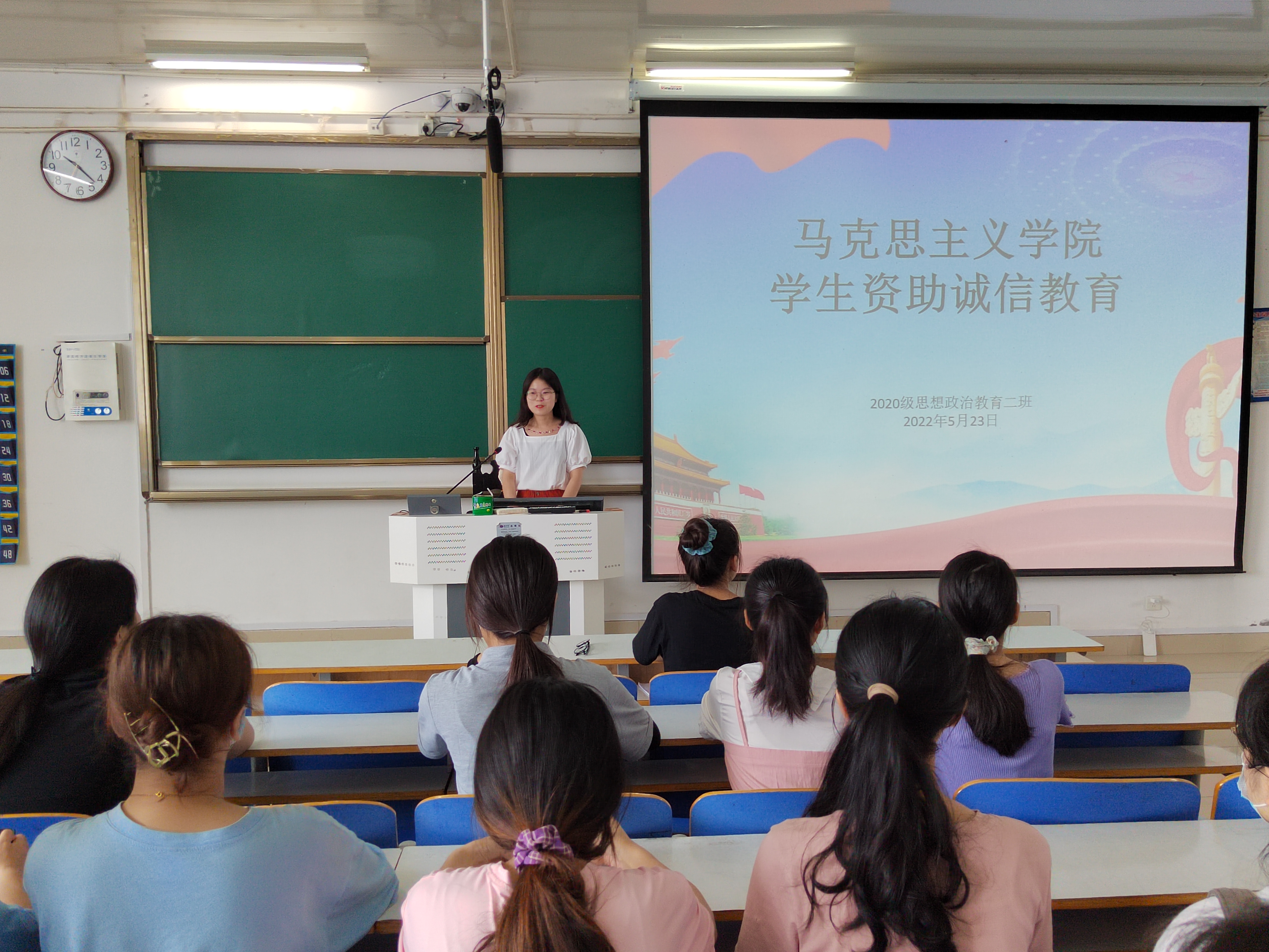 5月23日上午,2026年世界杯官网2020级思想政治教育二班、定向二班在社科楼514教室召开员工资助诚信教育主题班会。辅导员高小佳及2020级思想政治教育二班、定向二班全体同学共同参会。班会由高小佳主持。