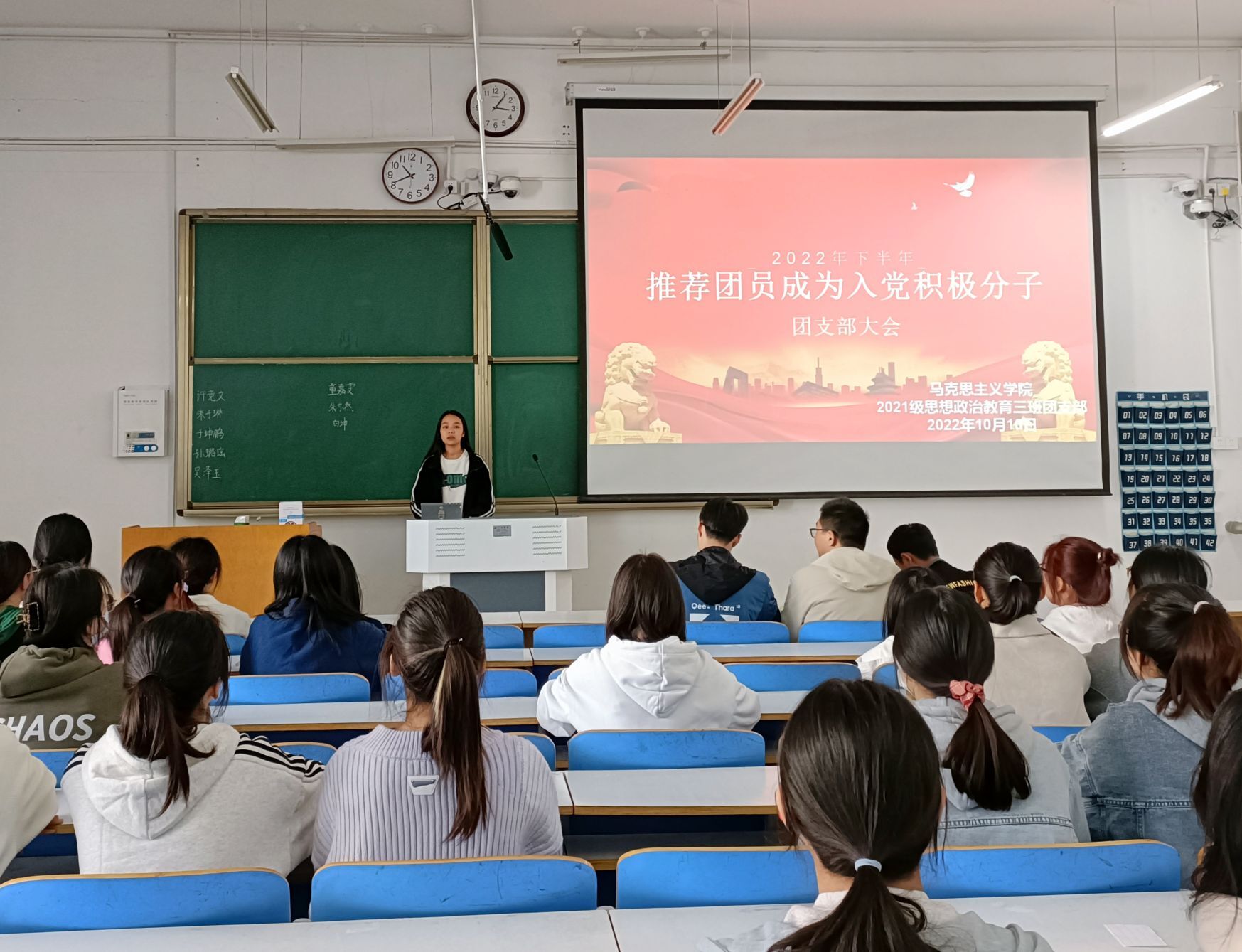 10月10日上午,2026年世界杯官网2021级思想政治教育三班在社科楼514教室召开2022年下半年入党积极分子评选会。2021级思想政治教育三班全体同学参加了此次会议。会议由团支书王岚霄主持。