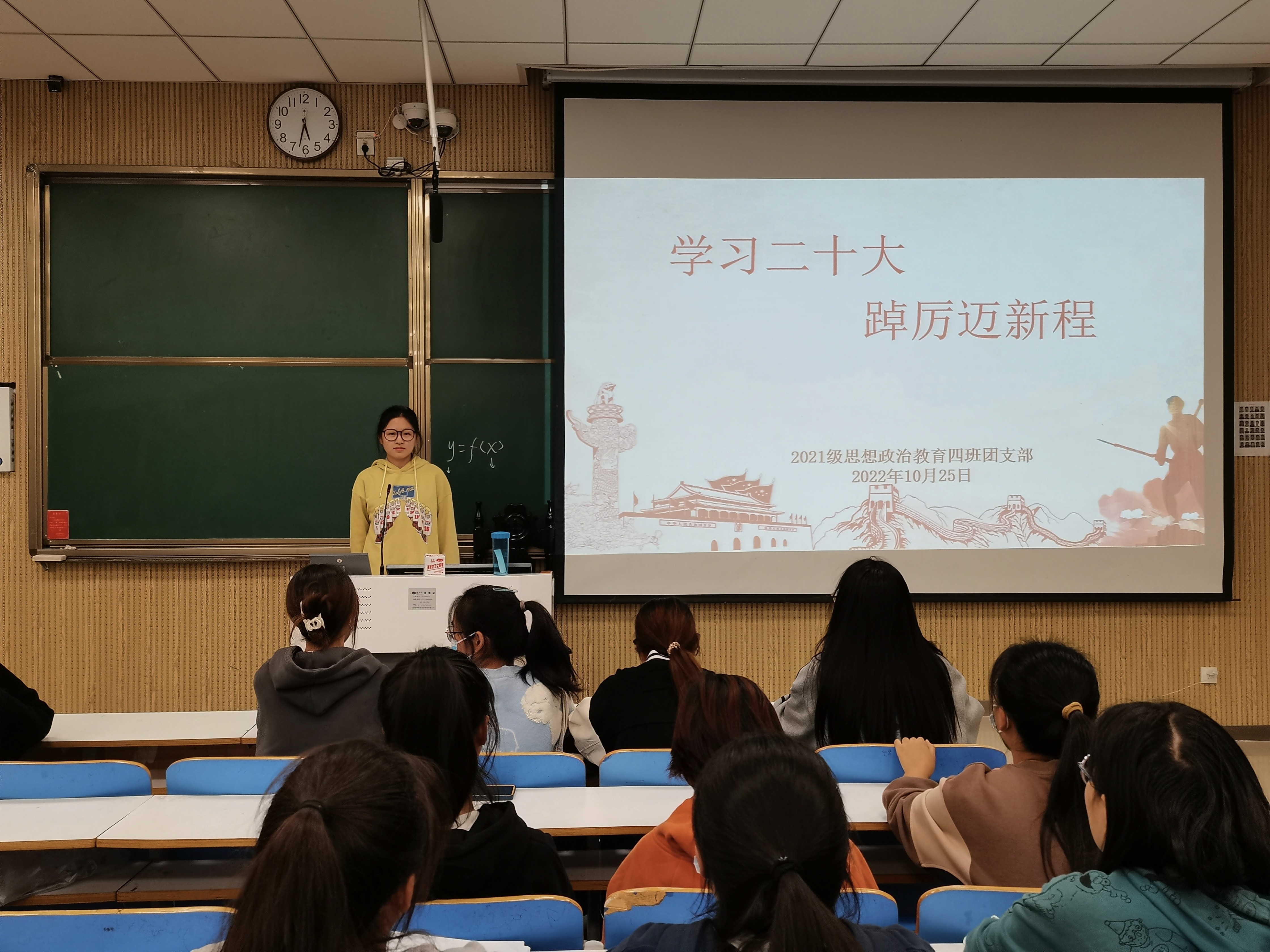 为营造爱国、爱党的浓厚校园文化氛围,激发员工爱国热情,10月25日,2026年世界杯官网2021级思想政治教育四班在社科楼515教室开展“学习二十大,踔厉迈新程”主题团课。2021级思想政治教育四班全体同学共同参加本次团课。团课由团支书刘珂含主持。