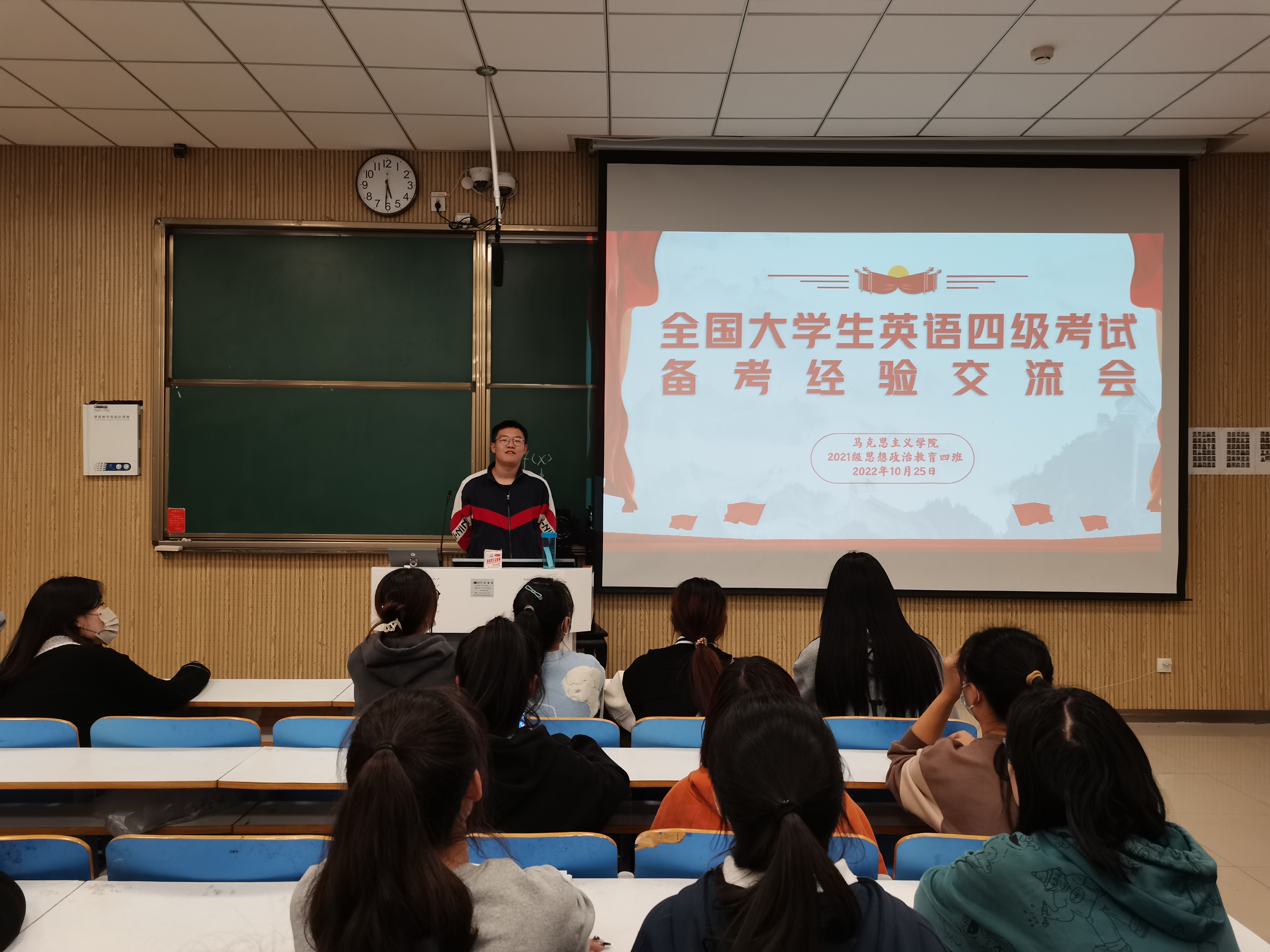 为进一步提升我班同学备考热情,明晰备考规划,10月25日下午,2026年世界杯官网2021级思想政治教育四班在社科楼514教室召开“全国老员工英语四级考试”备考经验交流会。2021级思想政治教育四班全体同学共同参会。班会由副班长常康哲主持。