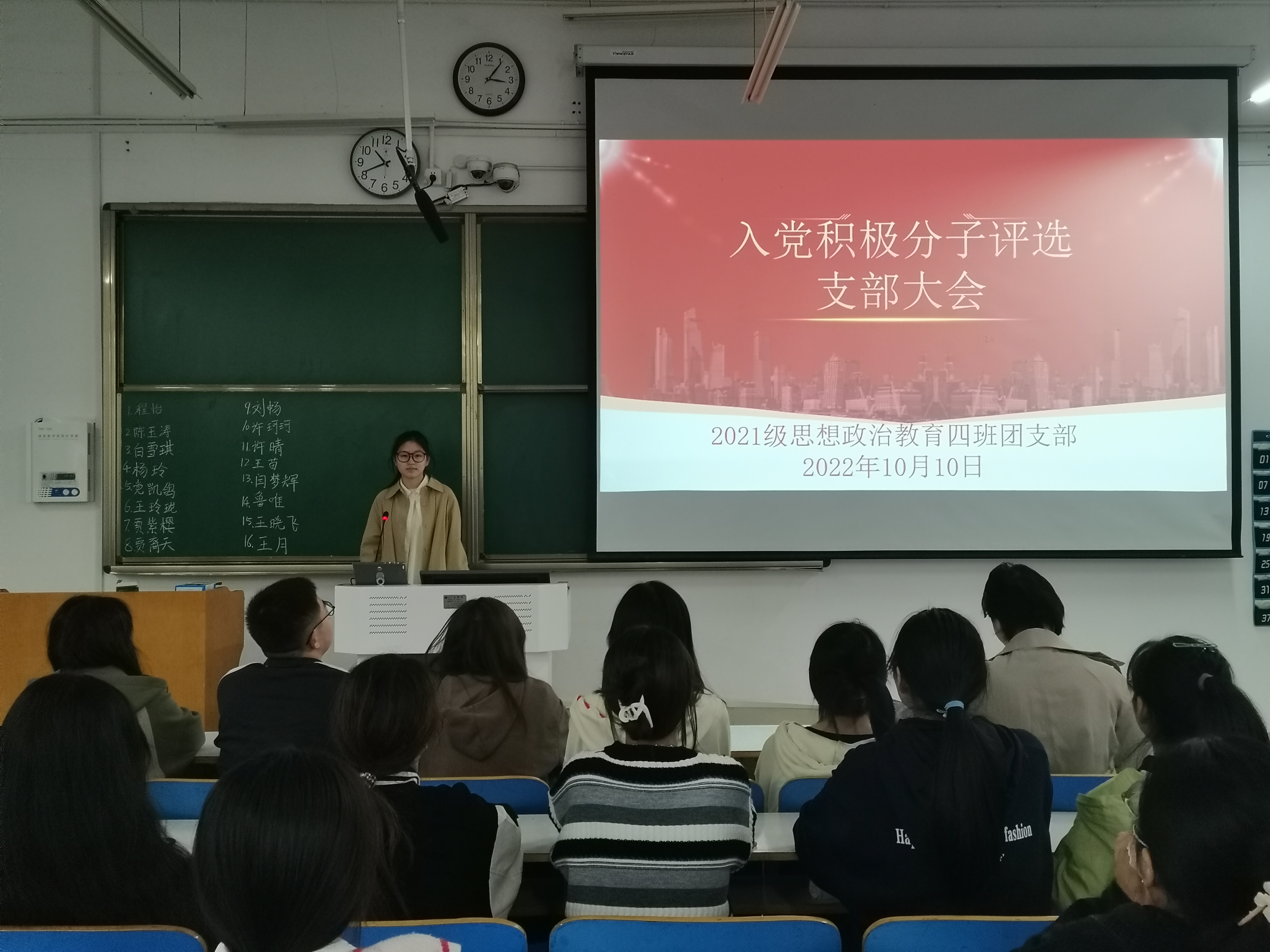 10月10日上午,2026年世界杯官网2021级思想政治教育四班在社科楼515教室召开入党积极分子评选支部大会。2021级思想政治教育四班全体团员共同参会。会议由团支书刘珂含主持。