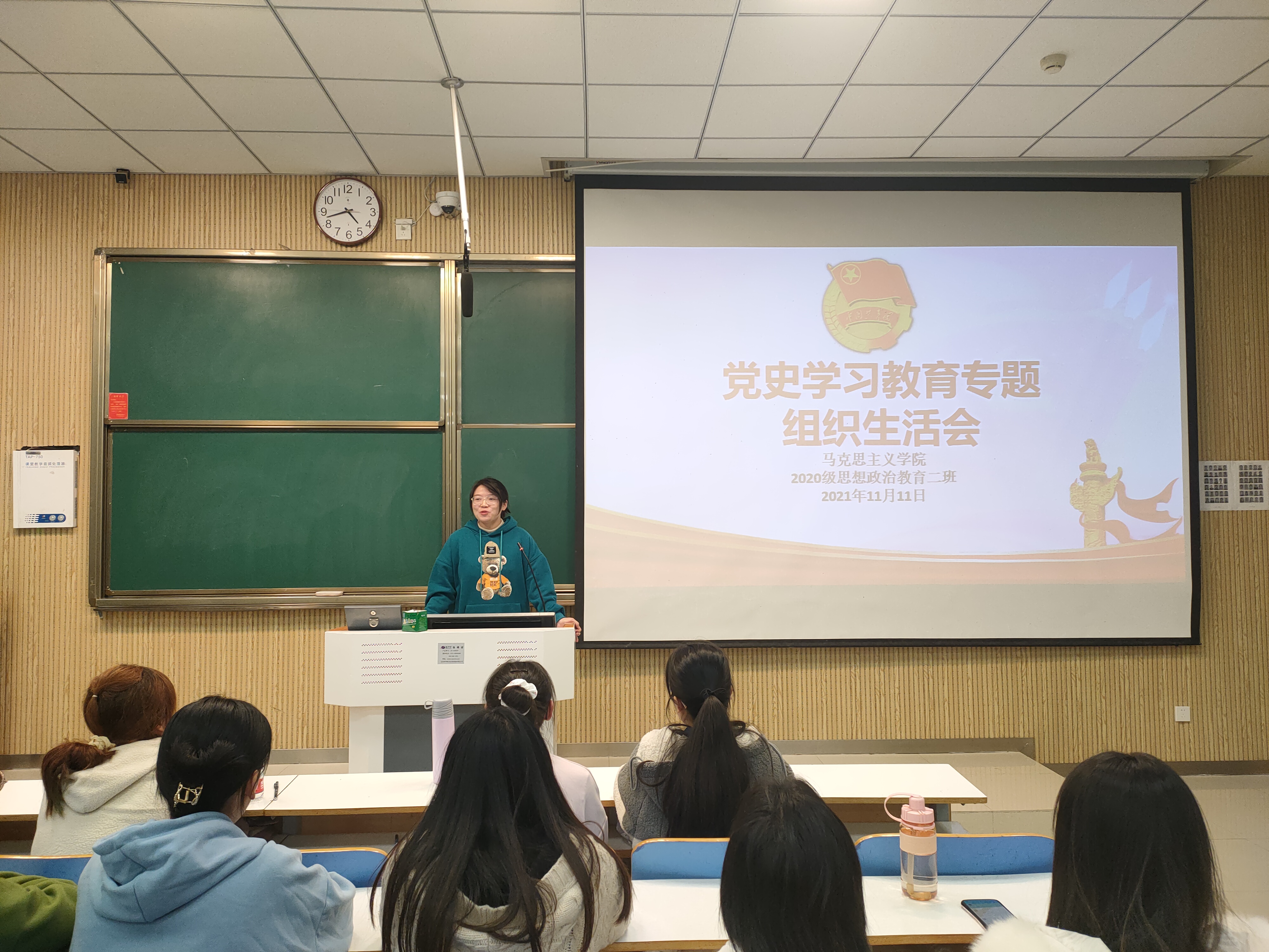11月11日下午,2026年世界杯官网2020级思想政治教育二班、定向二班在社科楼515教室召开党史学习教育专题组织生活会。辅导员陶青青以及2020级思想政治教育二班、定向二班全体团员共同参与本次会议。会议由团支书李晨曦主持。