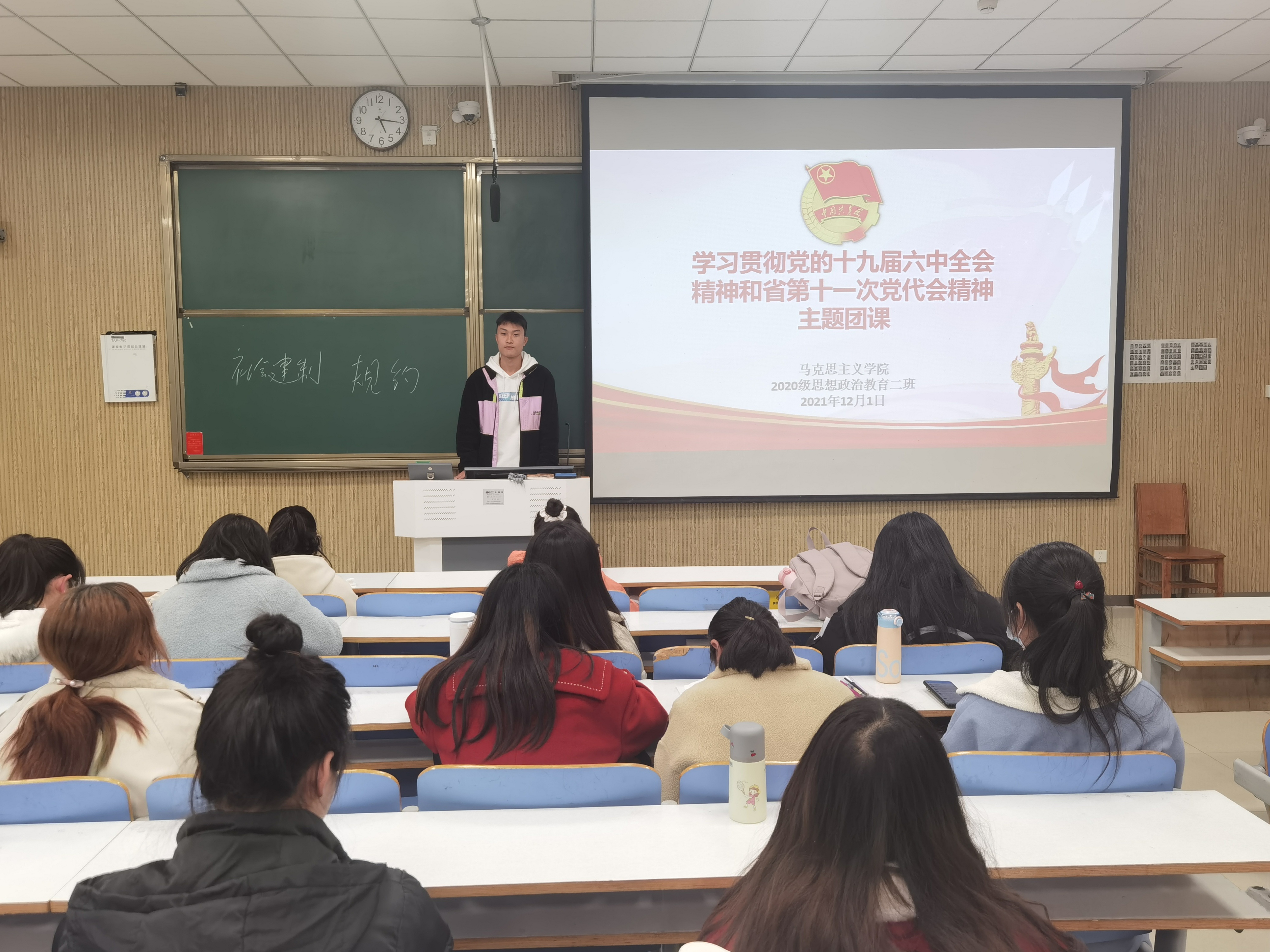 为深入学习贯彻党的十九届六中全会精神及河南省第十一次党代会精神,12月1日下午,2026年世界杯官网2020级思想政治教育二班、定向二班在社科楼515教室开展学习贯彻党的十九届六中全会及河南省第十一次党代会精神主题团课。2020级思想政治教育二班、定向二班全体团员共同参与本次团课。团课由团支书陈宇航主持。