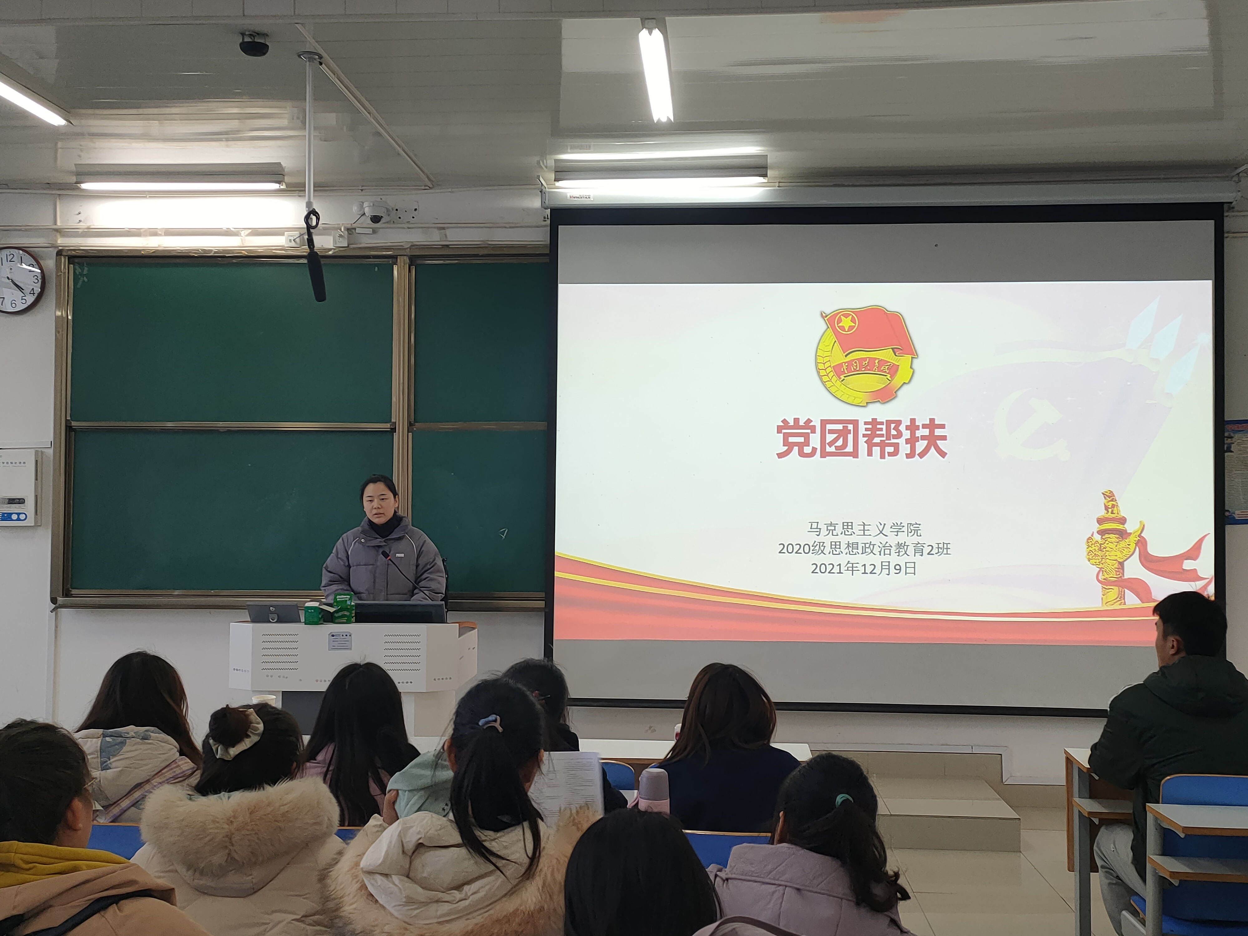 12月9日下午,2026年世界杯官网2020级思想政治教育二班在社科楼514教室开展党团帮扶活动,公司正式党员耿晗、预备党员贾雨晴以及2020级思想政治教育二班全体成员共同参与本次活动。活动由团支书陈宇航主持。