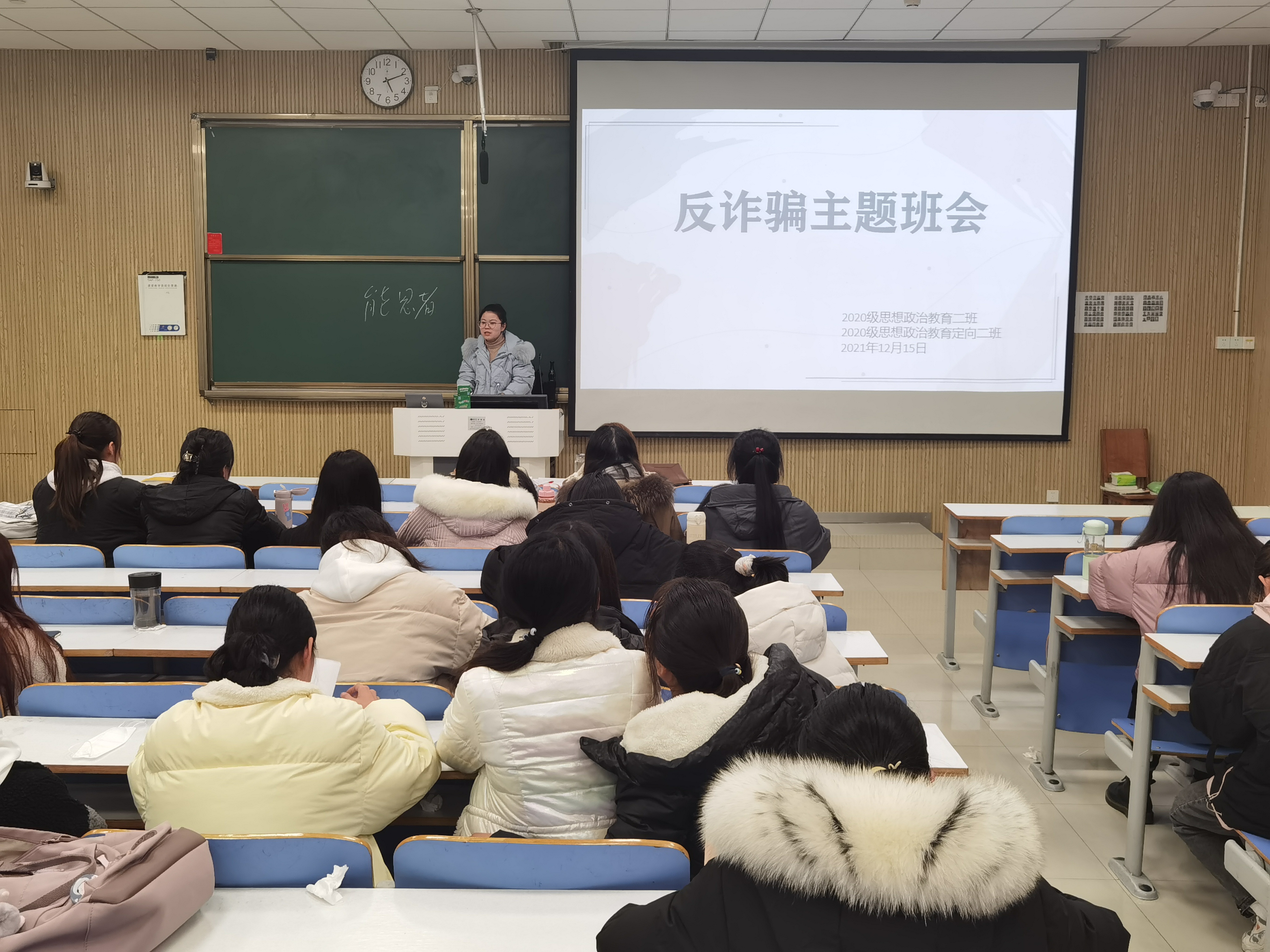 为提高员工的安全防范意识,切实保护员工的人身财产安全,12月15日下午,2026年世界杯官网2020级思想政治教育二班、定向二班在社科楼515教室召开“反诈骗”和“宿舍安全”教育主题班会。辅导员高小佳及2020级思想政治教育二班、定向二班全体同学共同参与本次班会。班会由辅导员高小佳主持。