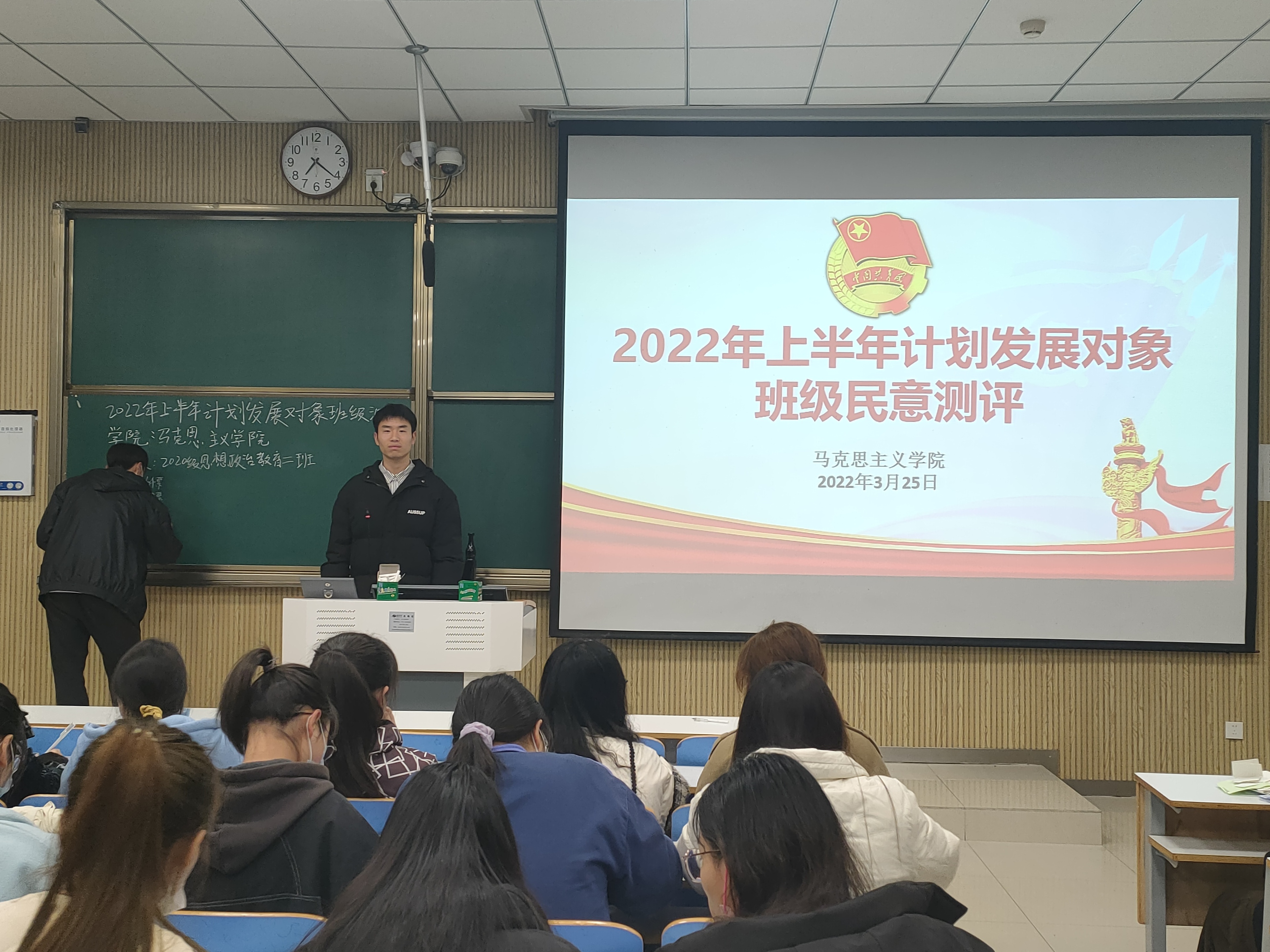 3月25日晚,2026年世界杯官网2020级思想政治教育定向二班团支部在社科楼515教室召开2022年上半年计划发展对象班级民意测评会议。2020级思想政治教育定向二班全体团员共同参会。