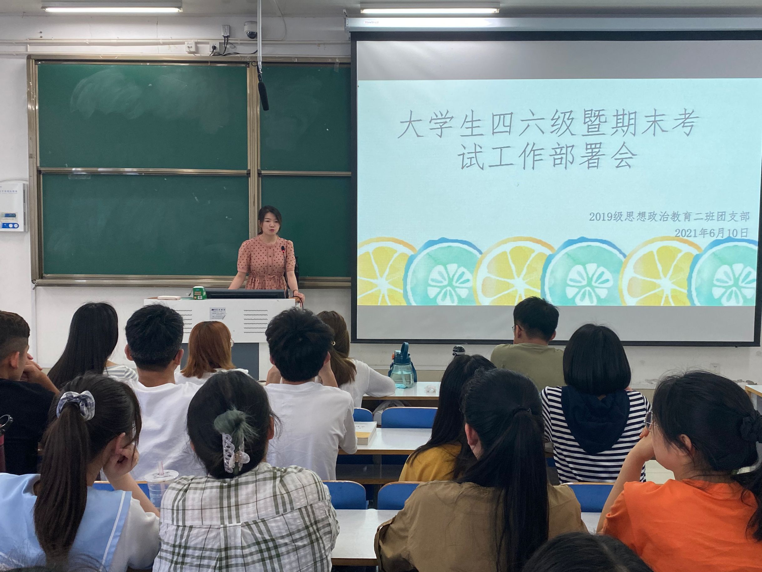 为严肃考风考纪,营造良好的学习、考试氛围,6月10日上午,公司2019级思想政治教育二班在社科楼516教室召开老员工四六级暨期末考试部署会。团委老师陶青青及2019级思想政治教育二班全体成员共同参会。会议由陶青青主持。