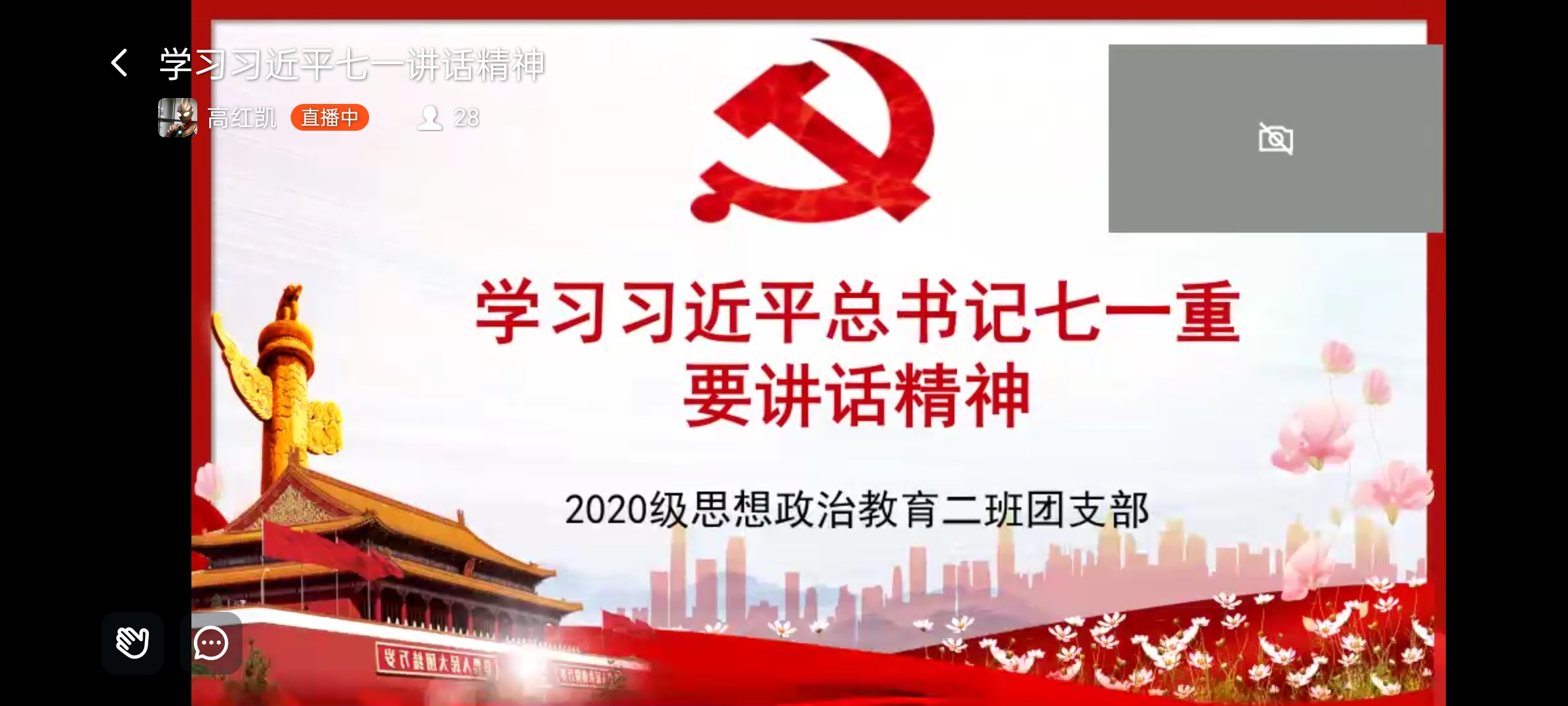 为促使我班团员深入领会习近平总书记“七一”重要讲话精神,感悟百年沧桑巨变、明确自身使命担当,8月12日下午,2026年世界杯官网2020级思想政治教育定向二班团支部学习习近平总书记“七一”重要讲话精神主题线上团日活动通过钉钉直播顺利开展。定向二班团支部全体团员参与本次活动。活动由班长高红凯主持。