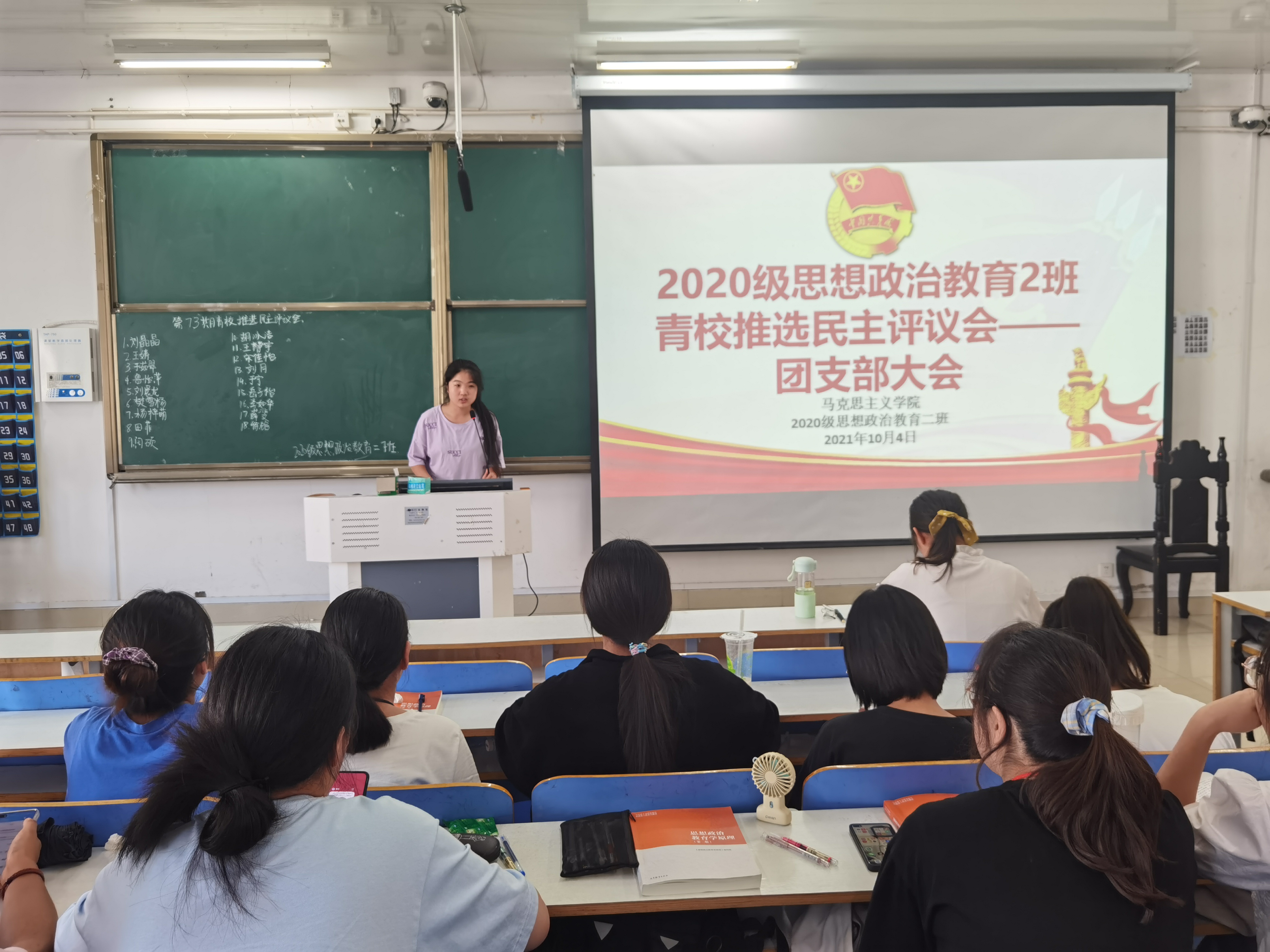 10月4日上午,2026年世界杯官网思想政治教育二班在社科楼516教室顺利召开第73期青校学员推选民主评选团支部大会。2020级思想政治教育二班全体团员共同参加本次会议。会议由孙雪主持。