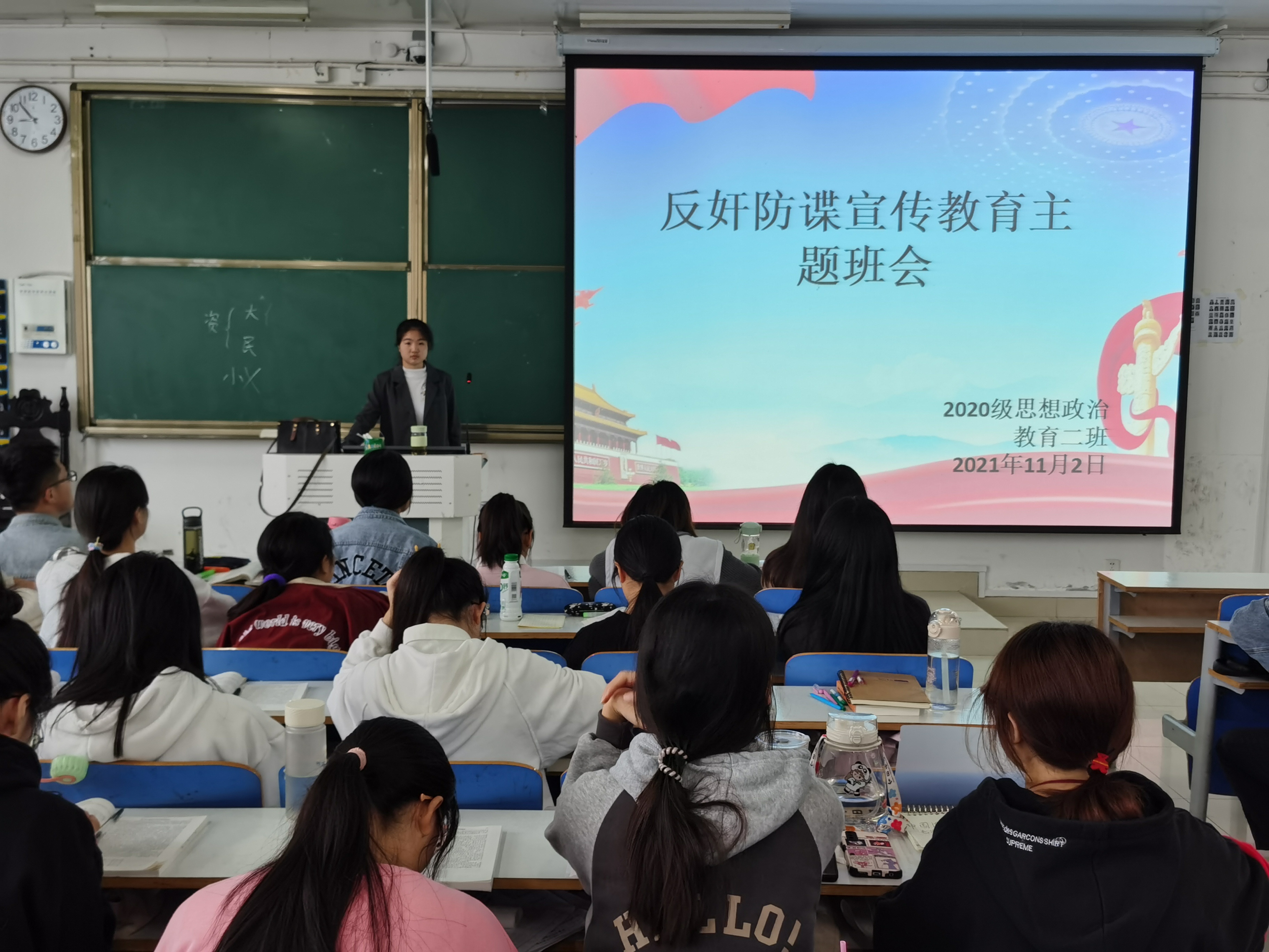 为进一步增强同学们的国家安全意识,11月2日上午,2026年世界杯官网2020级思想政治教育二班、定向二班在社科楼516教室召开“反奸防谍”宣传教育主题班会。2020级思想政治教育二班、定向二班全体同学共同参与本次班会。班会由副班长孙雪主持。