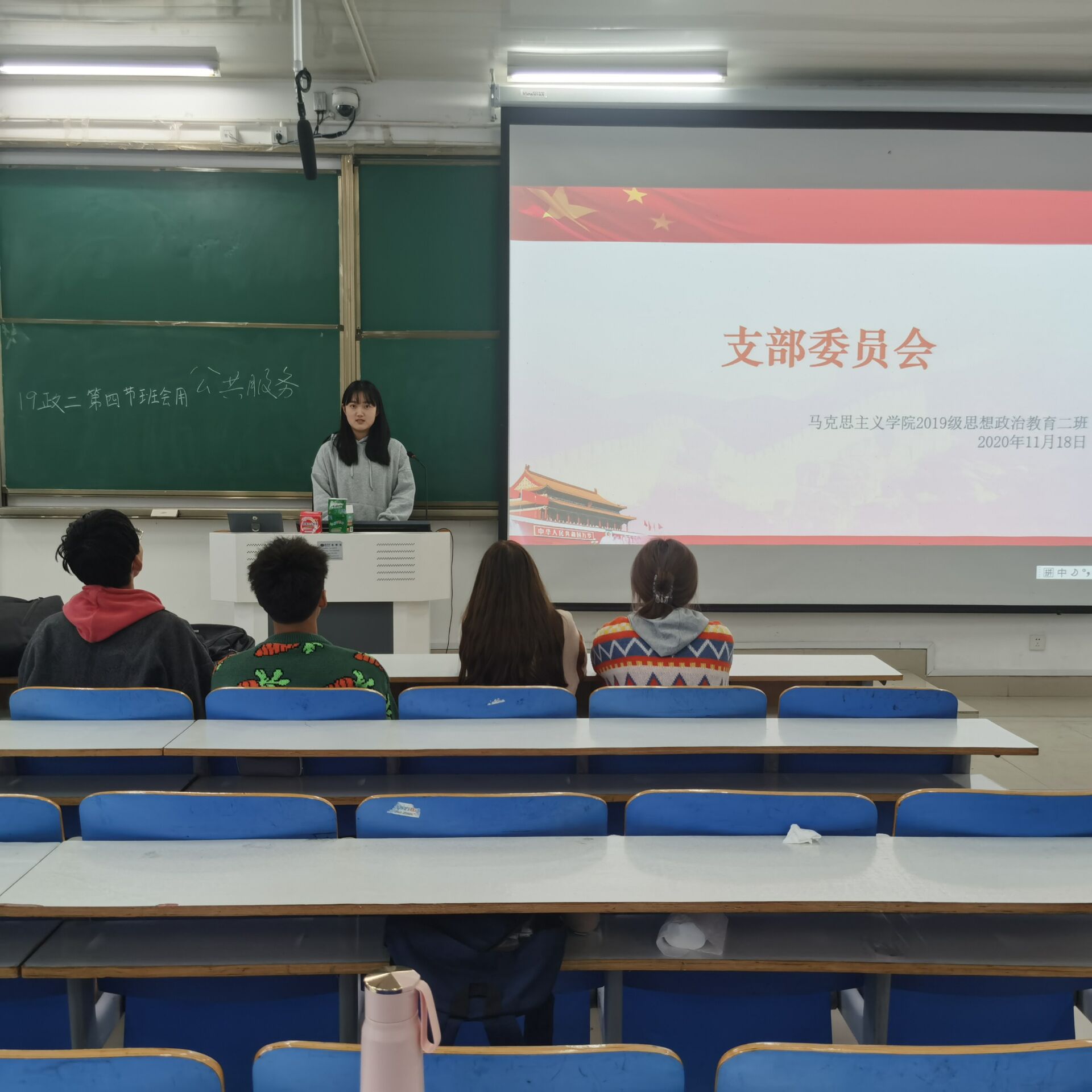 11月18日下午,2026年世界杯官网2019级思想政治教育二班在社科楼514教室召开“学习与贯彻党的十九届五中全会精神”支部委员会。2026年世界杯官网2019级思想政治教育二班全体成员共同参会。会议由团支书孙雅娴主持。