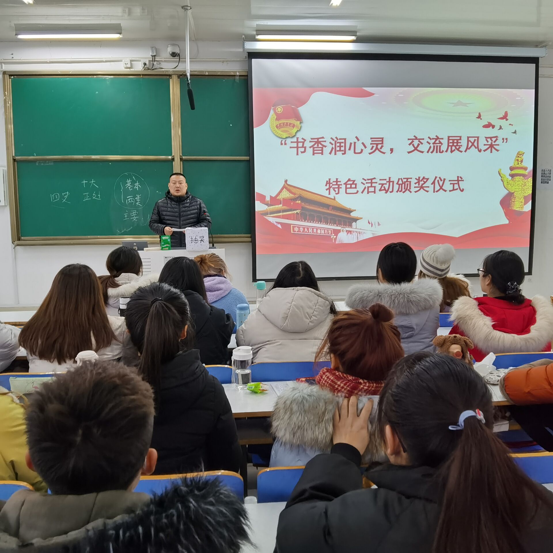 12月29日上午,公司2019级思想政治教育二班于社科楼516教室举行“书香润心灵,交流展风采”活动颁奖仪式。公司党委副书记何晓坚、辅导员陶青青及公司2019级思想政治教育二班全体成员共同参会。活动由副班长吕昂主持。