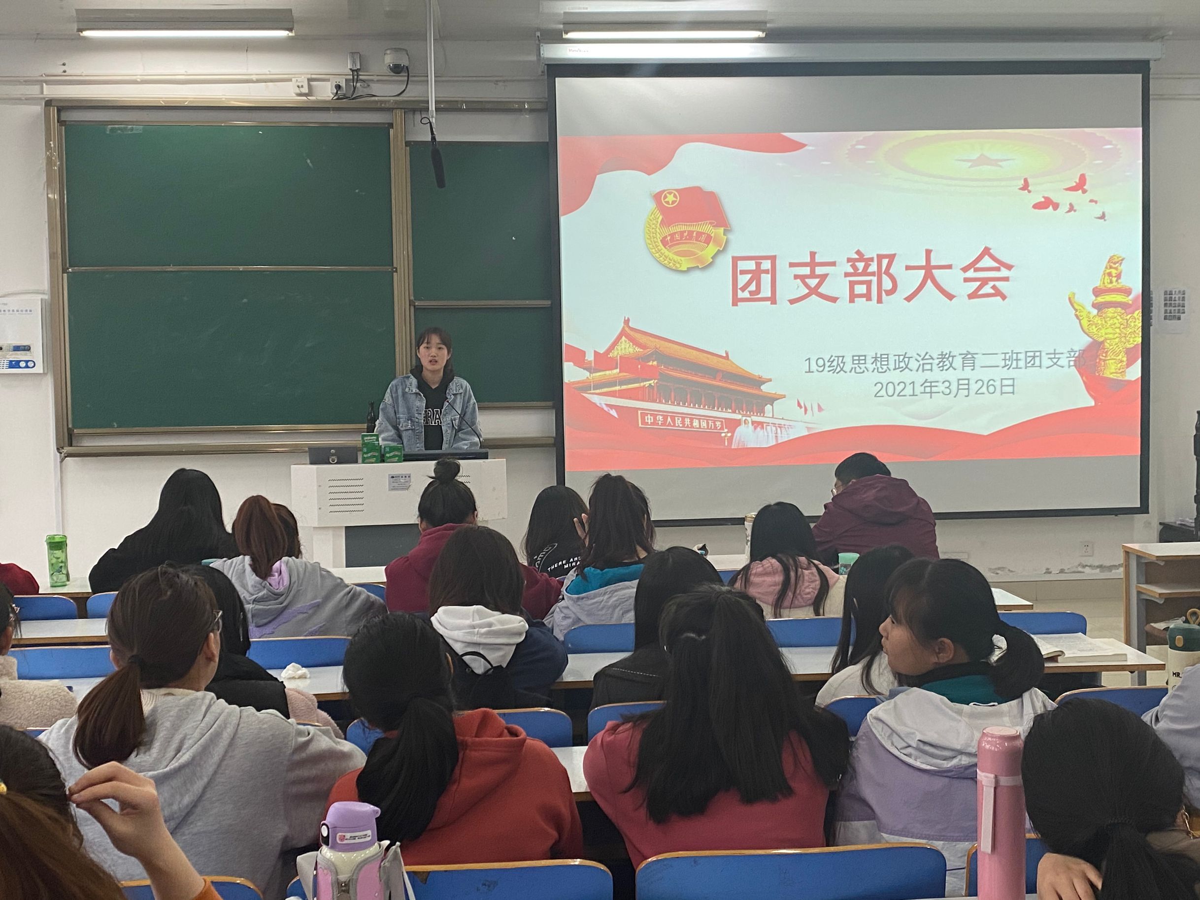为加强“四史”教育学习,激励团员们守初心、担使命,3月26日上午,公司2019级思想政治教育二班在社科楼516教室召开“学四史,践初心”团支部大会。2019级思想政治教育二班全体成员共同参会。会议由团支书孙雅娴主持。