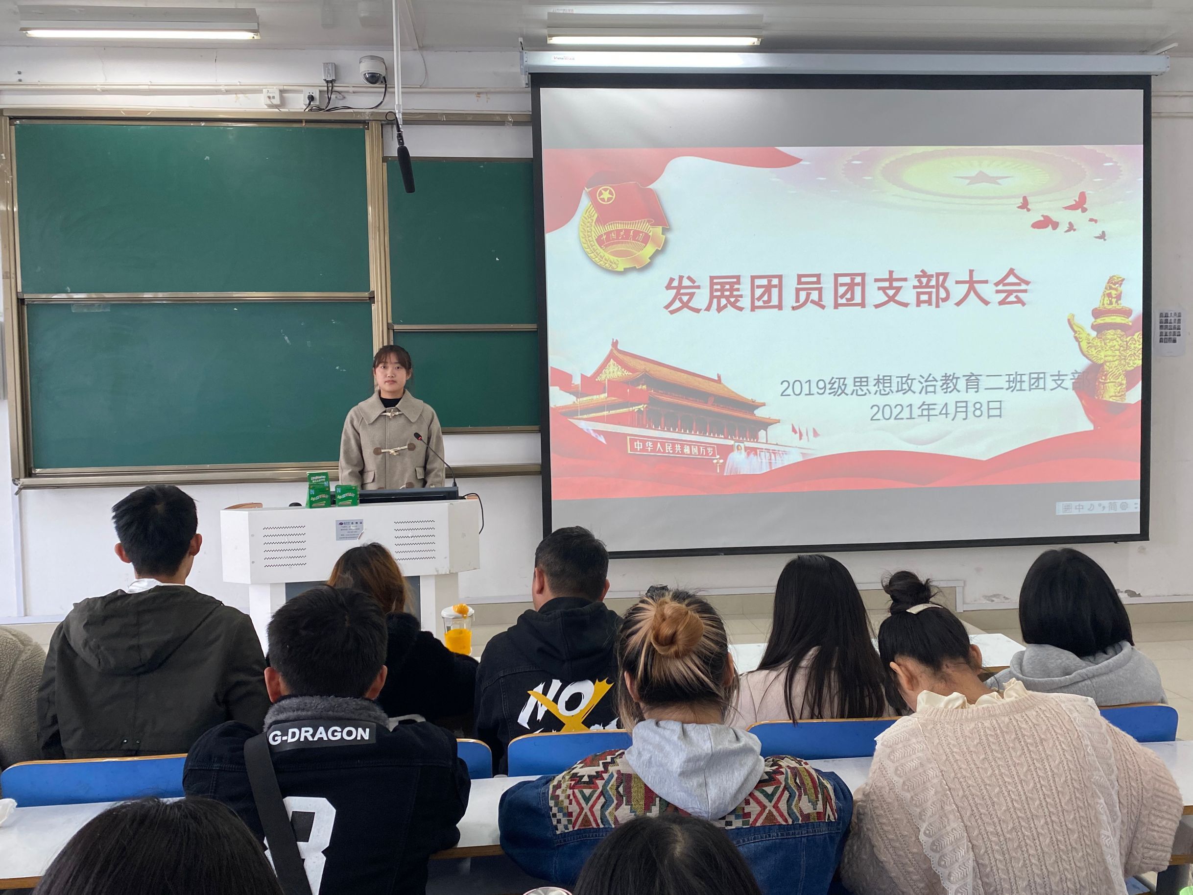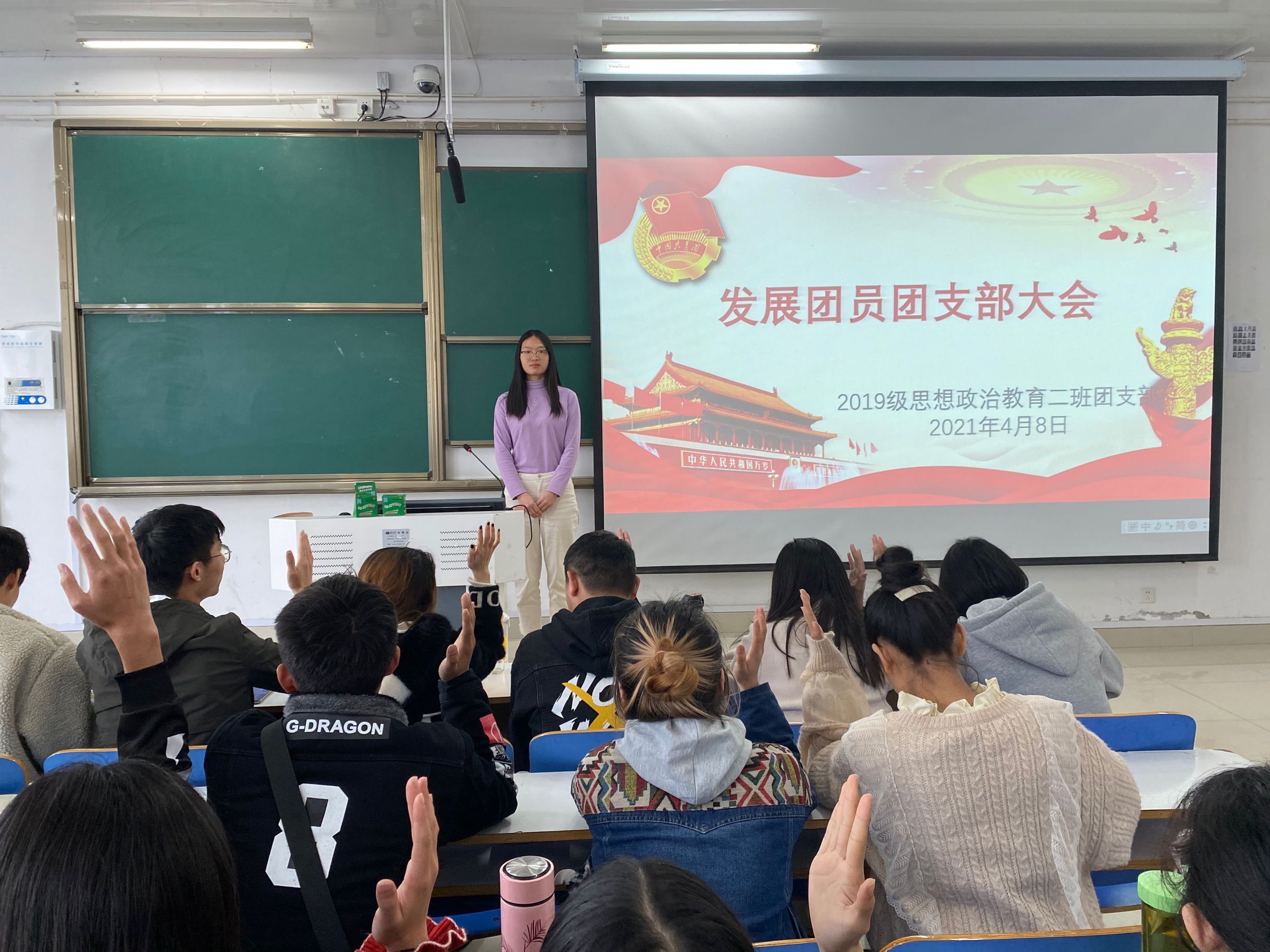 为不断深化团的阵地建设,更好地发挥团的组织优势和活动优势,4月8日上午,公司2019级思想政治教育二班在社科楼516教室召开“发展新团员,注入新力量”支部大会。2019级思想政治教育二班全体成员共同参会。会议由团支书孙雅娴主持。