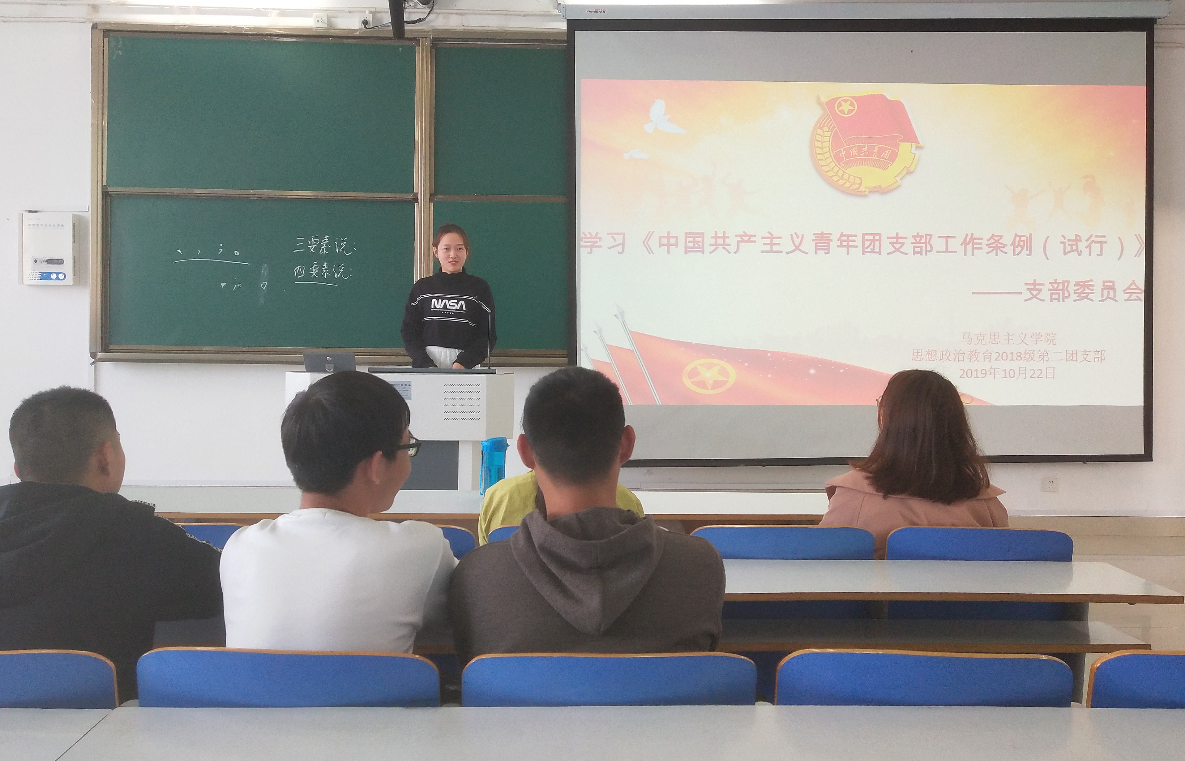 10月22日上午,公司2018级思想政治教育第二团支部在社科楼514教室顺利开展了主题为“学习《中国共产主义青年团支部工作条例(试行)》”支部委员会。会议由团支部书记黄子晋主持。
