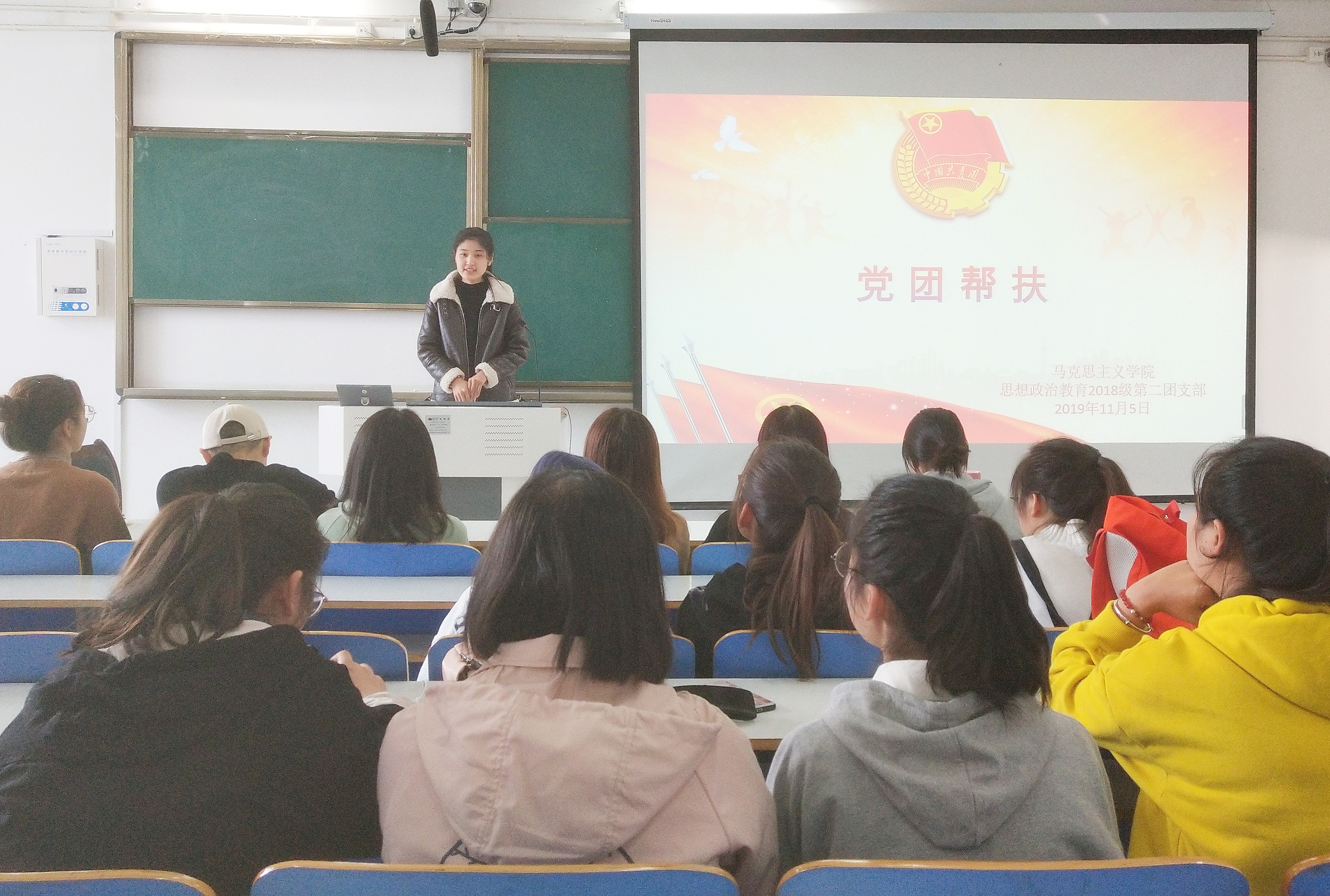 11月5日上午,公司2018级思想政治教育二班在社科楼514教室顺利开展了党团帮扶活动。我班邀请员工党员代表赵亚茹前来参加本次交流活动。活动由团支书黄子晋主持。