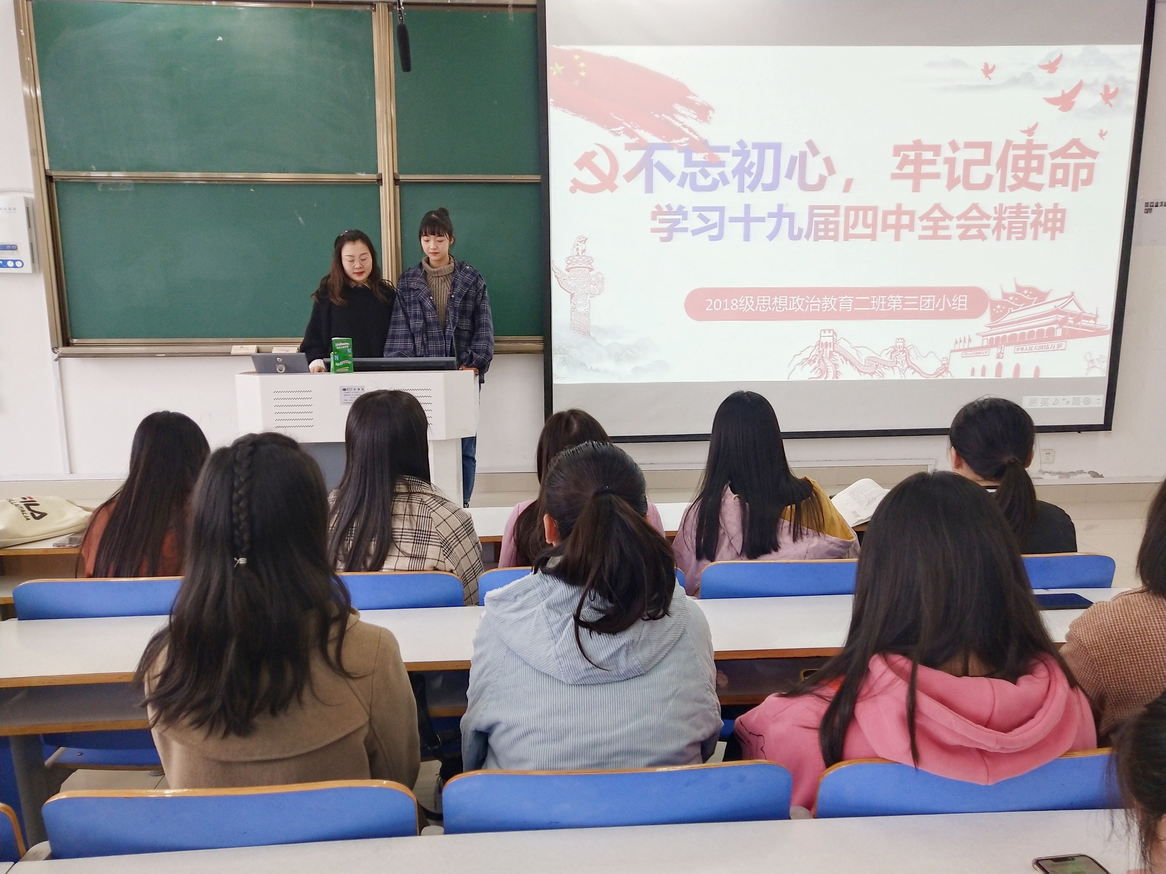 11月21日上午,公司2018级思想政治教育第二团支部第三团小组在社科楼516教室顺利开展了主题为“学习十九届四中全会精神”团小组会。会议由团小组成员铁兰欣主持。