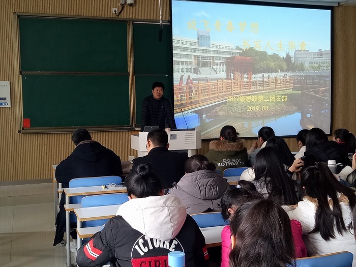 3月6日上午,2017级思想政治教育第二团支部全体成员在社科楼515教室召开了以“放飞青春梦想,书写人生华章”为主题的班会。