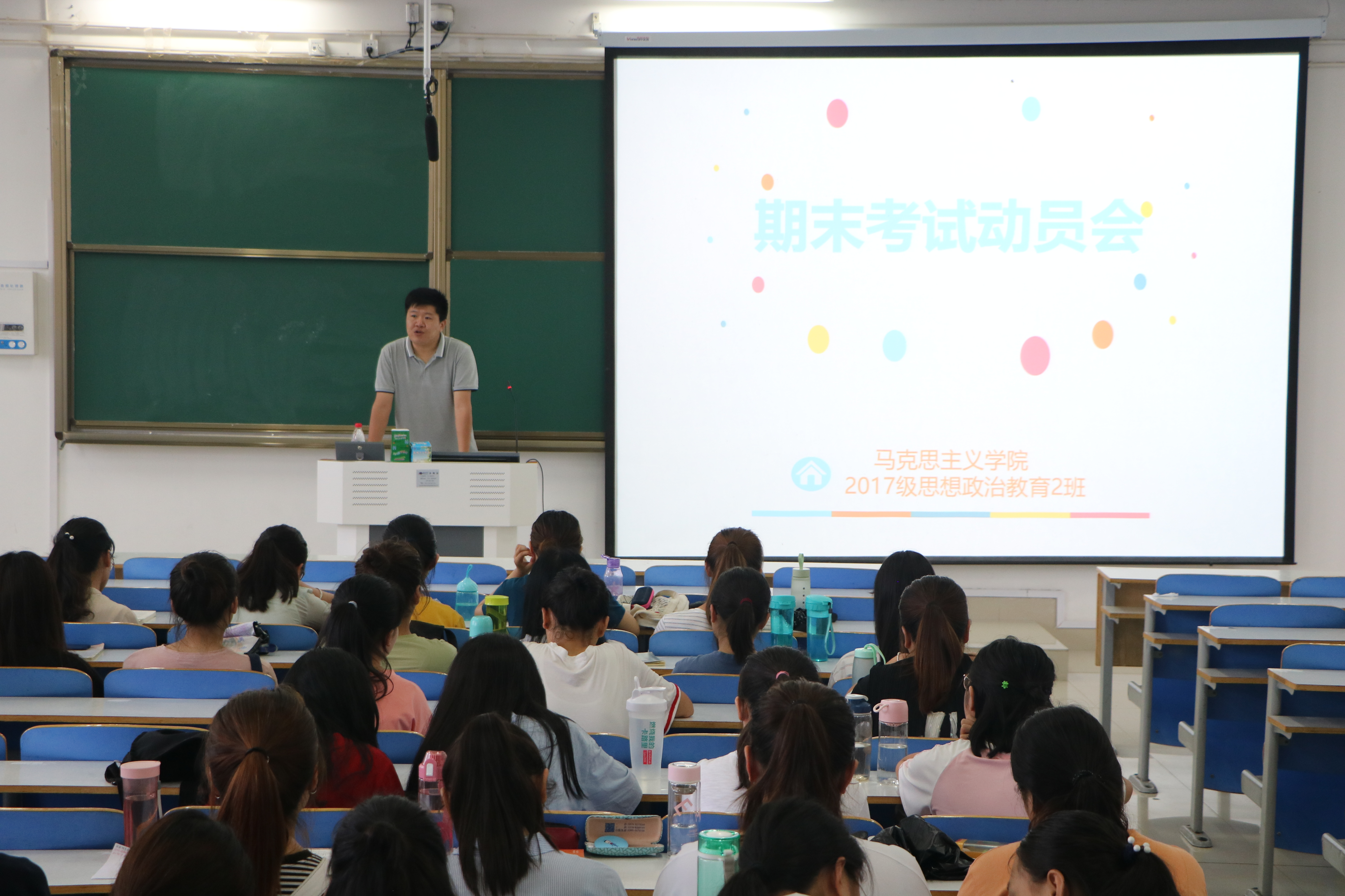 6月21日上午,2026年世界杯官网2017级思想政治教育二班在社科楼514教室召开期末考试动员会,班级辅导员孙绪曙及2017级思想政治教育二班全体成员参加本次会议,会议由班长艾子元主持。
