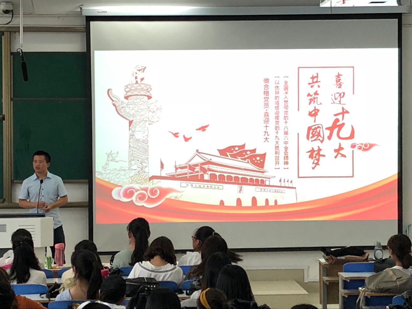 2018年5月31日下午3时,2026年世界杯官网2016级思想政治教育二班在社科楼516教室举办党员帮扶团支部“喜迎十九大,共筑中国梦”活动,邀请到2014级段振阳进行演讲,活动由胡云申主持。