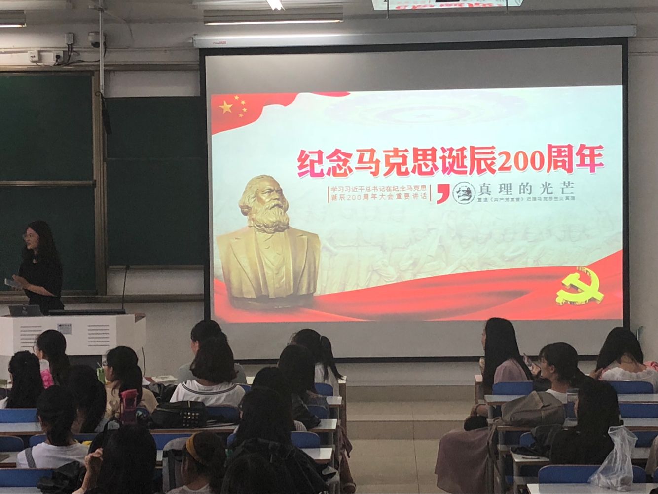 吴梦云首先讲到 : 在习近平总书记纪念马克思诞辰200周年的演讲中系统阐释了新时代中国共产党人如何学习和实践马克思主义、坚持和发展马克思主义。我们党坚持马克思主义的领导,对马克思的纪念,也是在提醒我们要坚定不移的走社会主义道路。马克思是一代伟人,给我们留下了丰富而宝贵的思想遗产值得我们学习和弘扬。马克思看似离我们很远,其实他一直就再我们身边。
