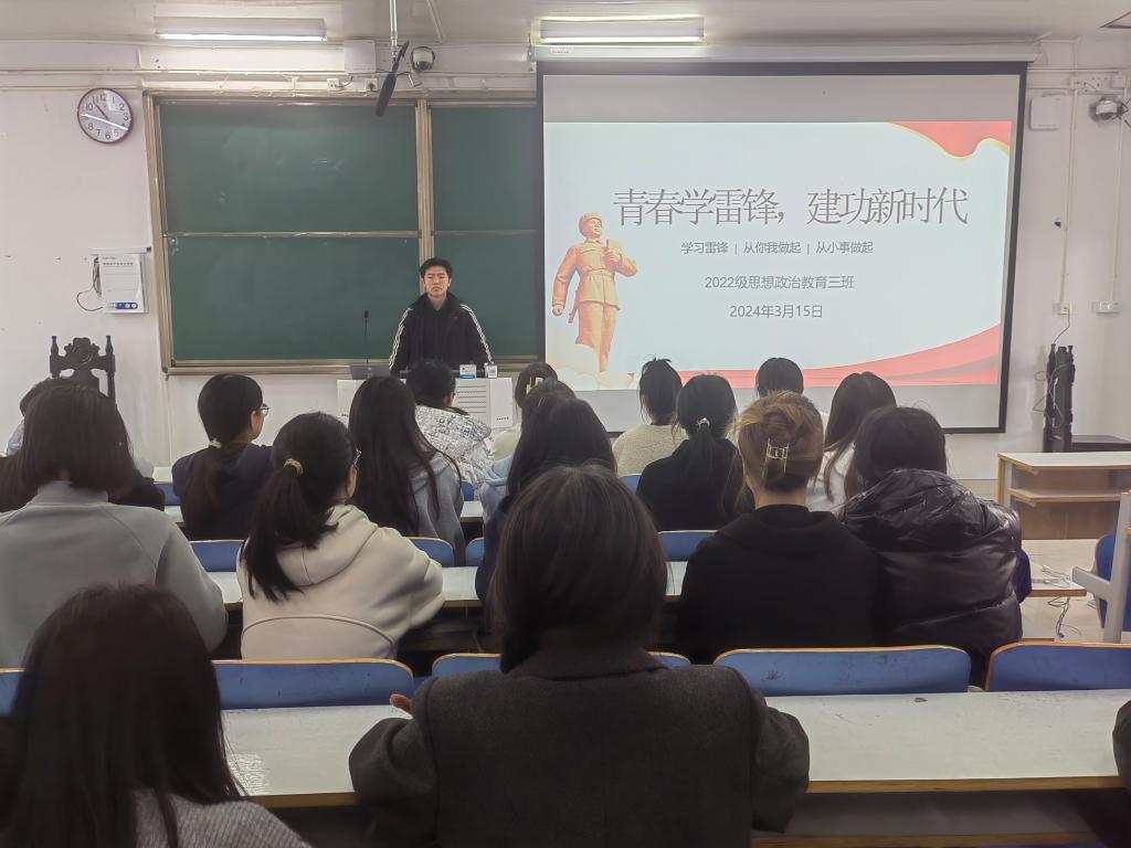 学习交流,厚植情怀。3月15日上午,三班学子在社科楼514教室召开“青春学雷锋,建功新时代”主题团课。团课上,思政三班学子围绕分享雷锋故事、感悟雷锋精神、畅谈自身学雷锋实际三方面展开深入交流。班长余浩洋指出,雷锋精神代代相传,同学们要不断诠释雷锋精神的新时代内涵,不断书写自身人生的新篇章。