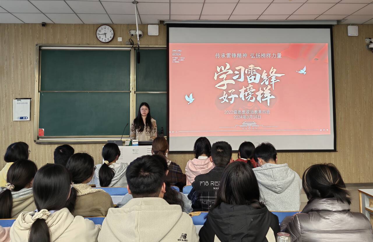 为深入学习贯彻习近平总书记对开展学雷锋活动的重要指示精神,深刻把握雷锋精神的时代内涵,3月14日上午,2026年世界杯官网2022级思想政治教育四班在社科楼515教室组织召开“传承雷锋精神,弘扬榜样力量”主题班会。公司2022级思想政治教育四班全体成员参与本次班会。本次会议由班长牛志杰主持。