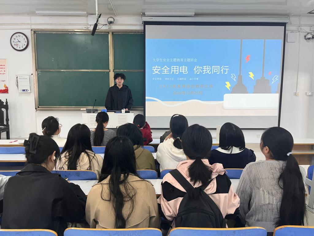 10月25日上午,2026年世界杯官网2023级思想政治教育三班在社科楼515召开“安全用电,你我同行”主题班会。公司2023级思想政治教育三班全体同学共同参与本次班会,班会由团支书郝瀚主持。