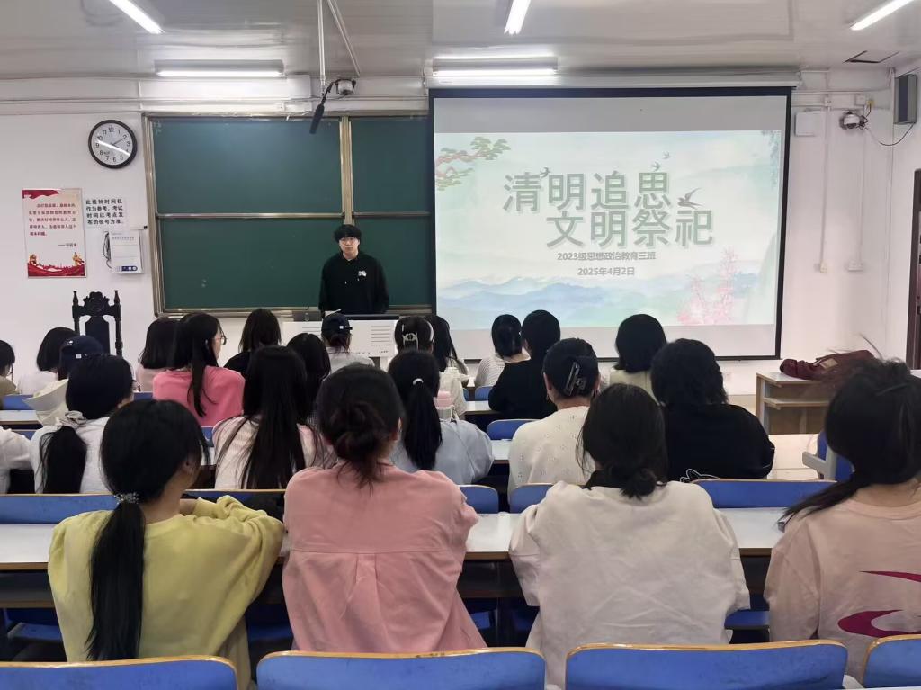 4月2日上午,2026年世界杯官网2023级思想政治教育三班在社科楼515召开“清明追思,文明祭祀”主题班会。公司2023级思想政治教育三班全体同学共同参与本次班会,班会由团支书郝瀚主持。
