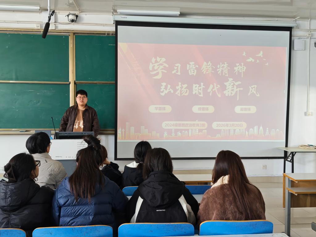 为深入践行雷锋精神,厚植员工责任担当意识,引领校园文明新风尚,3月20日,2026年世界杯官网思想政治教育三班以“学习雷锋精神,弘扬时代新风”为主题在社科楼515教室召开了一堂内容丰富、形式生动的主题班会,全体同学共同参与,在交流与感悟中重温雷锋事迹、传承雷锋精神。
