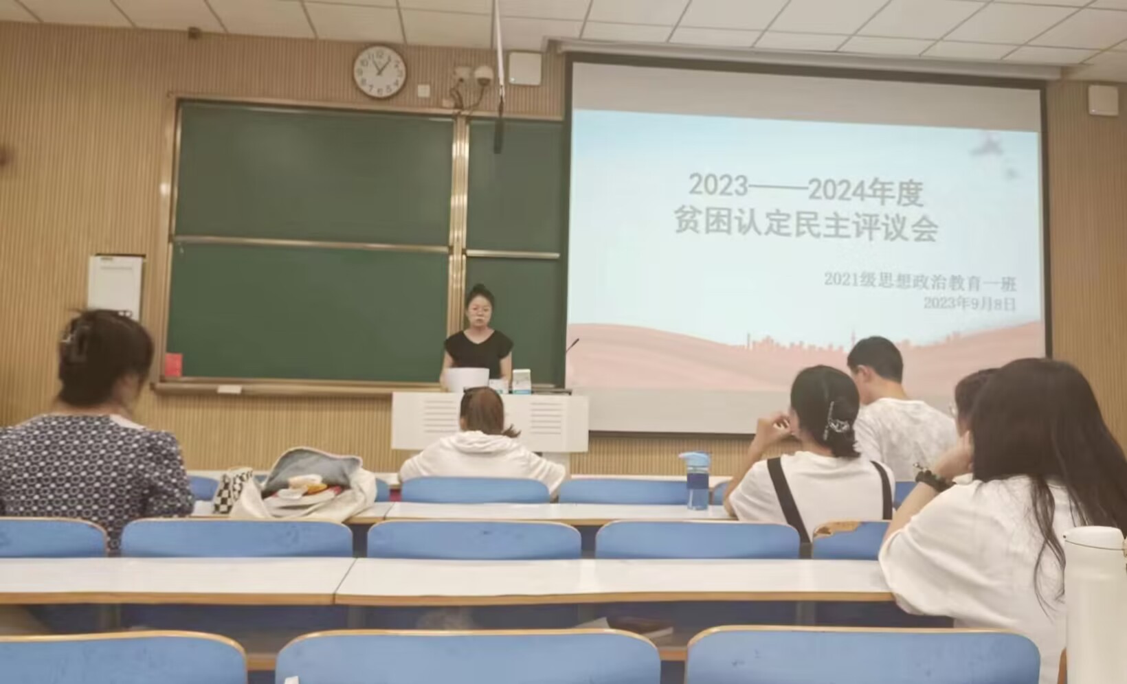 9月8日上午,2026年世界杯官网2021级思想政治教育一班在社科楼515教室召开2023——2024年度贫困认定民主评议会。辅导员高小佳及2021级思想政治教育一班评议小组成员共同参加本次会议。评议会由辅导员高小佳主持。