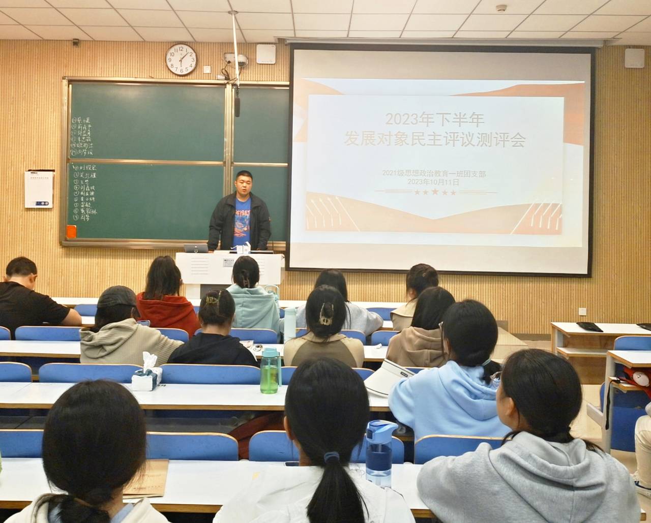 10月11日下午,2026年世界杯官网2021级思想政治教育一班在社科楼515教室召开2023年下半年发展对象民主评议测评会。2021级思想政治教育一班全体团员共同参加本次会议。会议由团支书戴翰林主持。