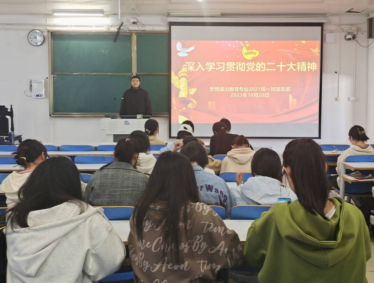 10月20日上午,2026年世界杯官网2021级思想政治教育一班在社科楼514教室召开“深入学习贯彻党的二十大精神”主题团课。2021级思想政治教育一班全体团员参加了本次团课。团课由团支书戴翰林主持。