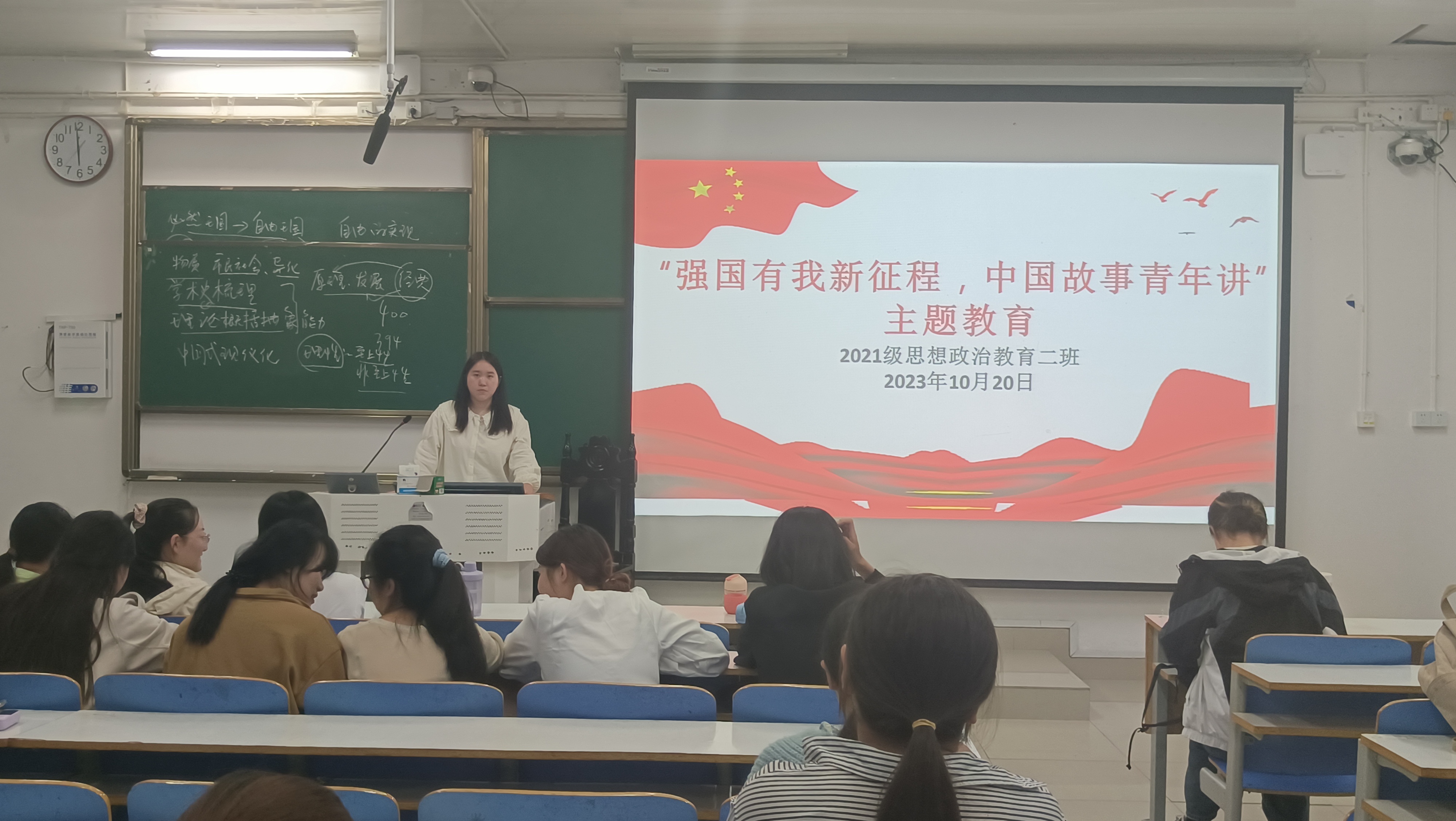 10月20日下午,2026年世界杯官网2021级思想政治教育二班在社科楼514教室召开“强国有我新征程,中国故事青年讲”主题团课。2021级思想政治教育二班全体团员参加此次团课。团课由团支书王婧欣主持。