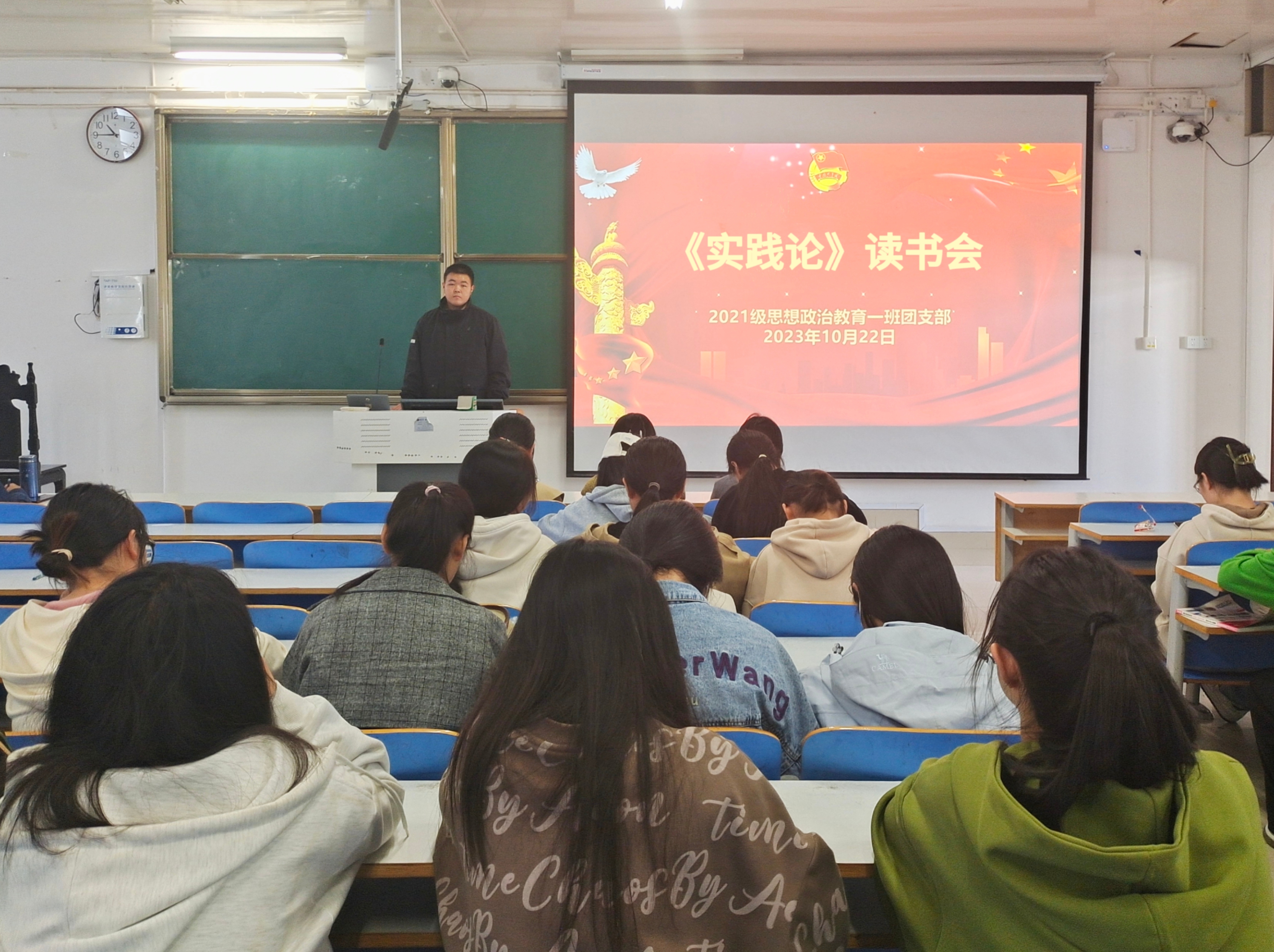 10月22日上午,2026年世界杯官网2021级思想政治教育一班在社科楼514教室召开《实践论》读书会。2021级思想政治教育一班全体成员参加了此次读书会。读书会由团支书戴翰林主持。