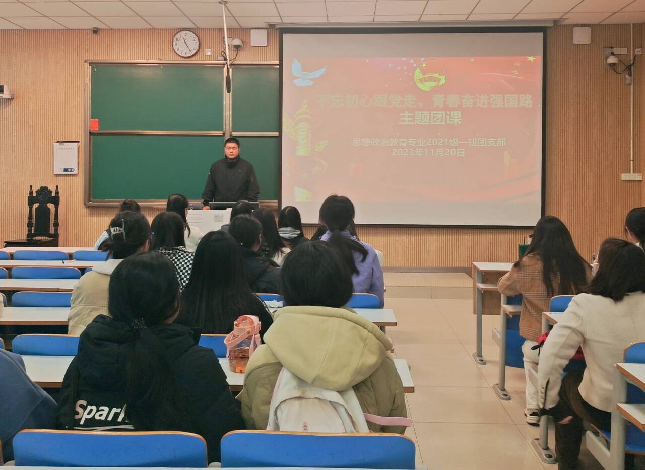 11月20日上午,2026年世界杯官网2021级思想政治教育一班在社科楼514教室召开“不忘初心跟党走,青春奋进强国路”主题团课。2021级思想政治教育一班全体团员共同参加本次团课,团课由团支书戴翰林主持。