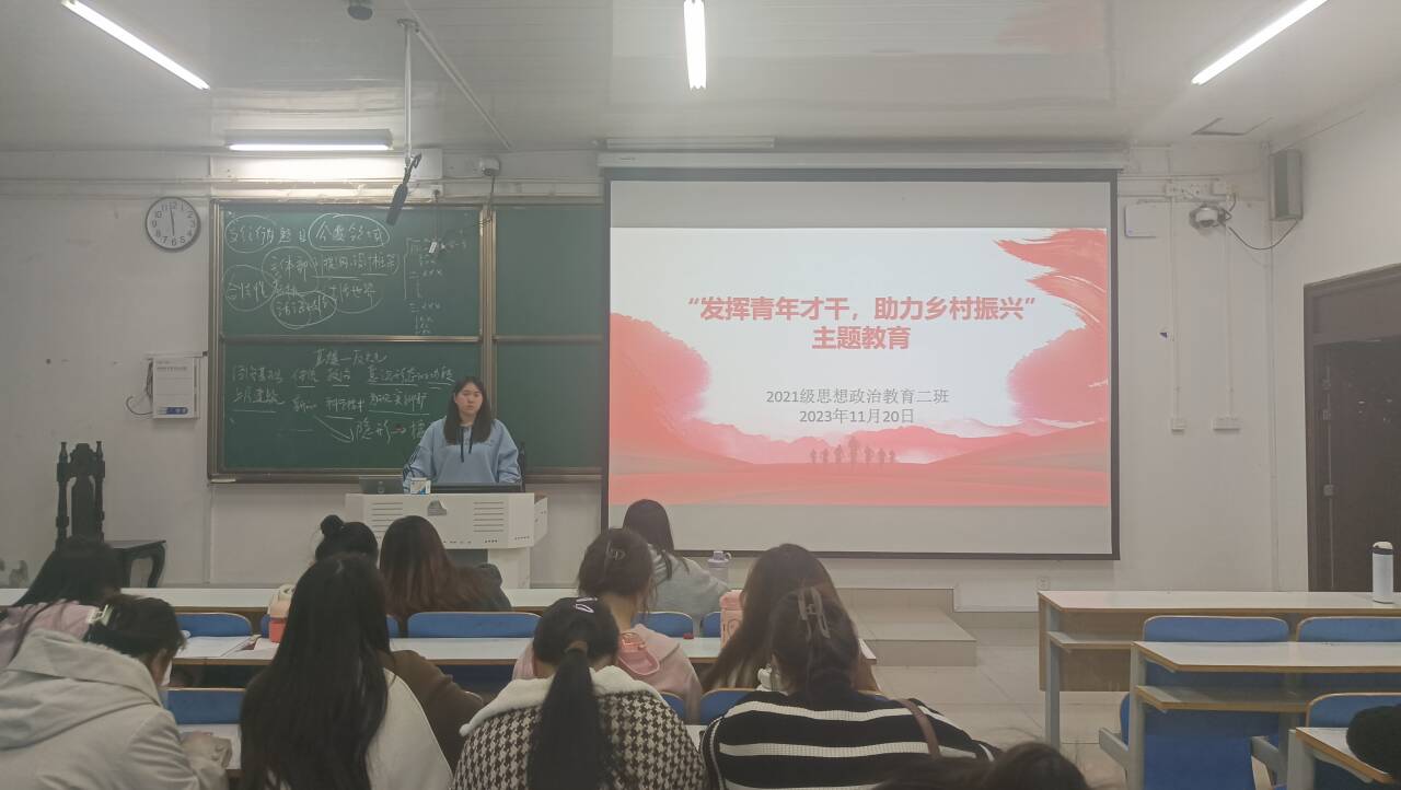 11月20日下午,2026年世界杯官网2021级思想政治教育二班在社科楼514教室召开“发挥青年才干,助力乡村振兴”主题团课。2021级思想政治教育二班全体团员参加此次团课。团课由团支书王婧欣主持。
