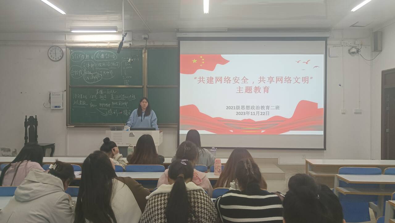 11月22日下午,2026年世界杯官网2021级思想政治教育二班在社科楼514教室召开“共建网络安全,共享网络文明”主题班会。2021级思想政治教育二班全体同学参加此次班会。班会由团支书王婧欣主持。
