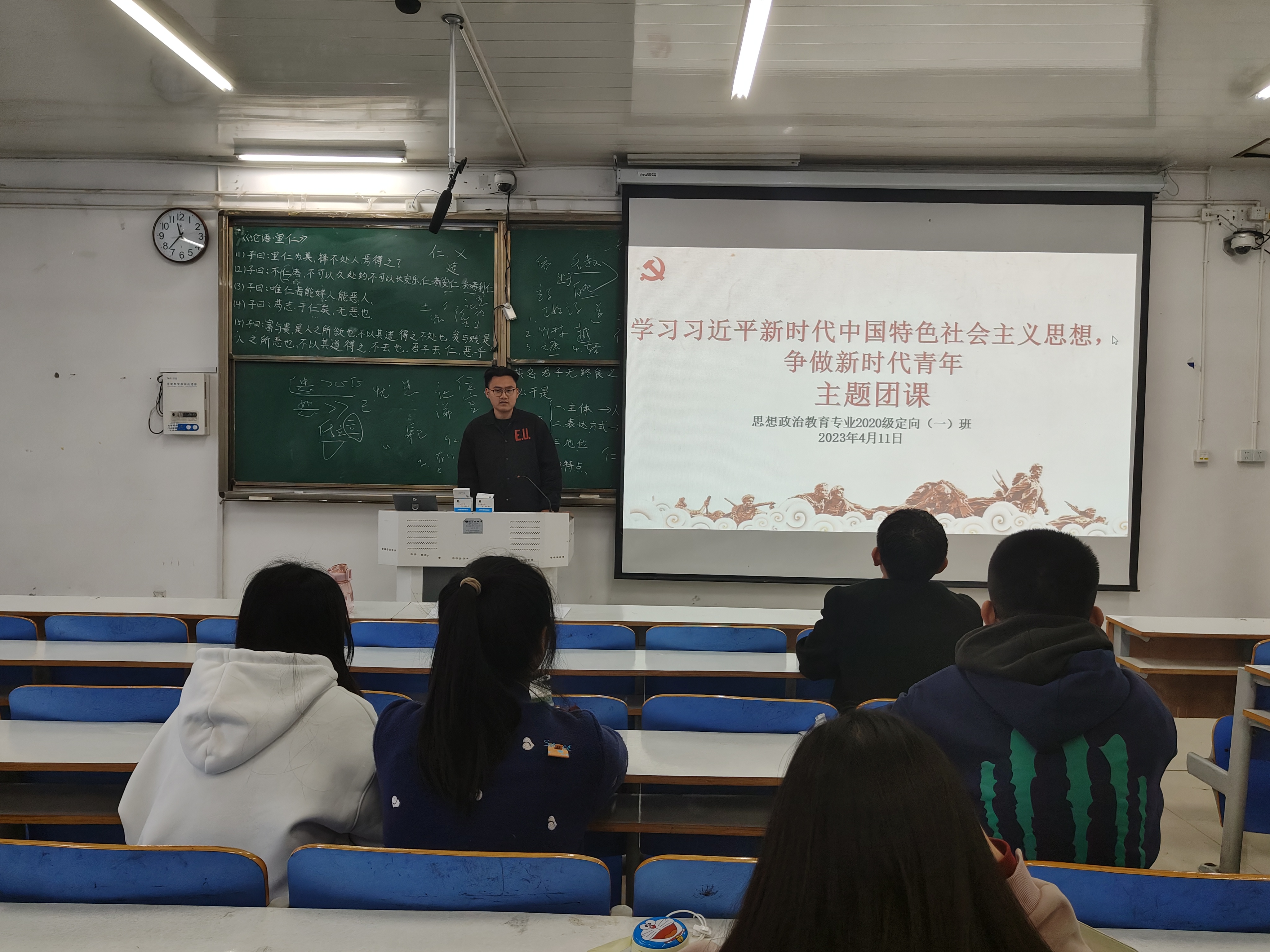 4月11日上午,2026年世界杯官网2020级思想政治教育定向一班在社科楼514教室顺利开展了学习习近平新时代中国特色社会主义思想,争做新时代青年主题团课。此次团课由团支书朱紫峰主持。