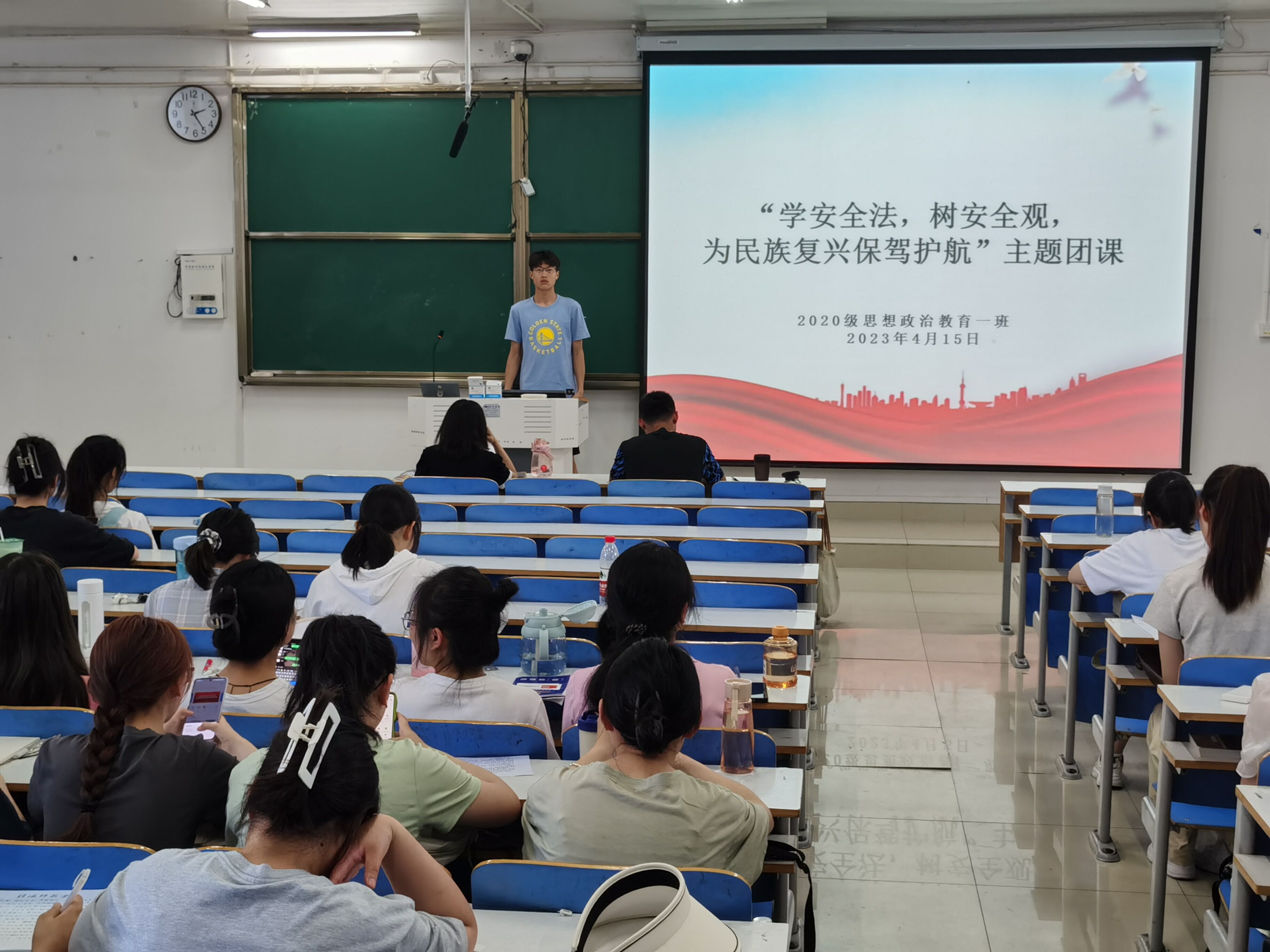 4月15日下午,2026年世界杯官网2020级思想政治教育一班团支部在社科楼514教室召开“学安全法,树安全观,为民族复兴保驾护航”安全教育主题团课,2020级思想政治教育一班全体团员参加此次团课。团课由团支部副书记白帅豪主持。