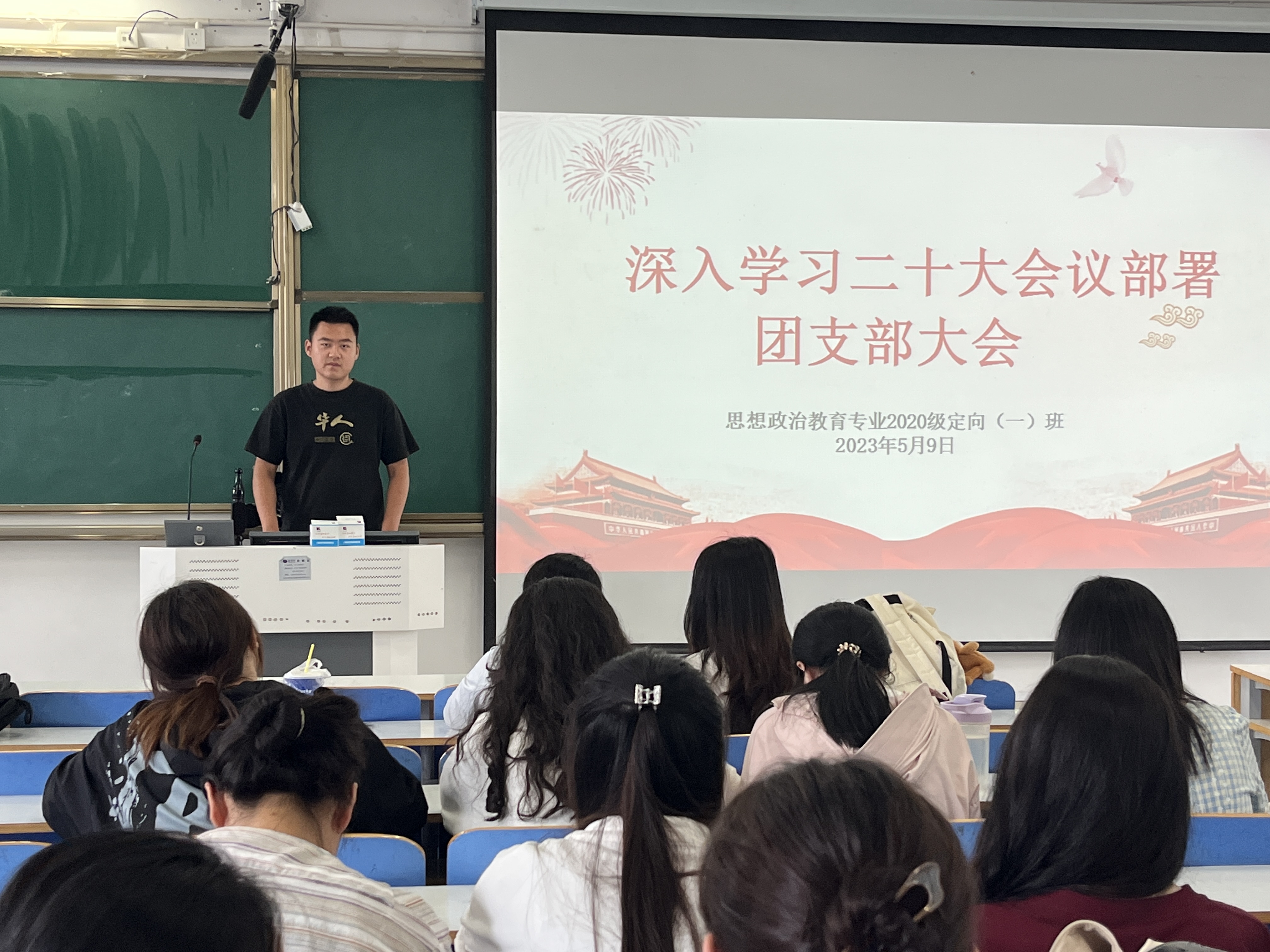 5月9日下午,2026年世界杯官网2020级思想政治教育定向一班深入学习二十大会议部署团支部大会在社科楼514教室举行。会议由团支书朱紫峰主持。