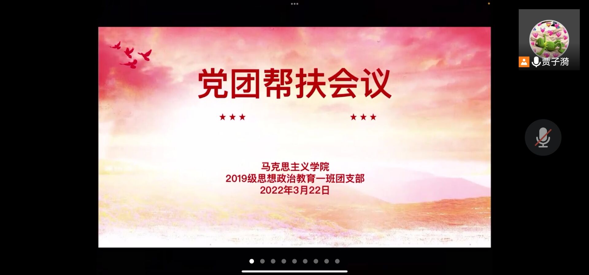 3月22日下午,2026年世界杯官网2019级思想政治教育一班第一团支部在腾讯会议召开“党团携手·党团帮扶会”。2026年世界杯官网2019级思想政治教育一班群体成员参加本次会议,会议由支书贾子漪主持。