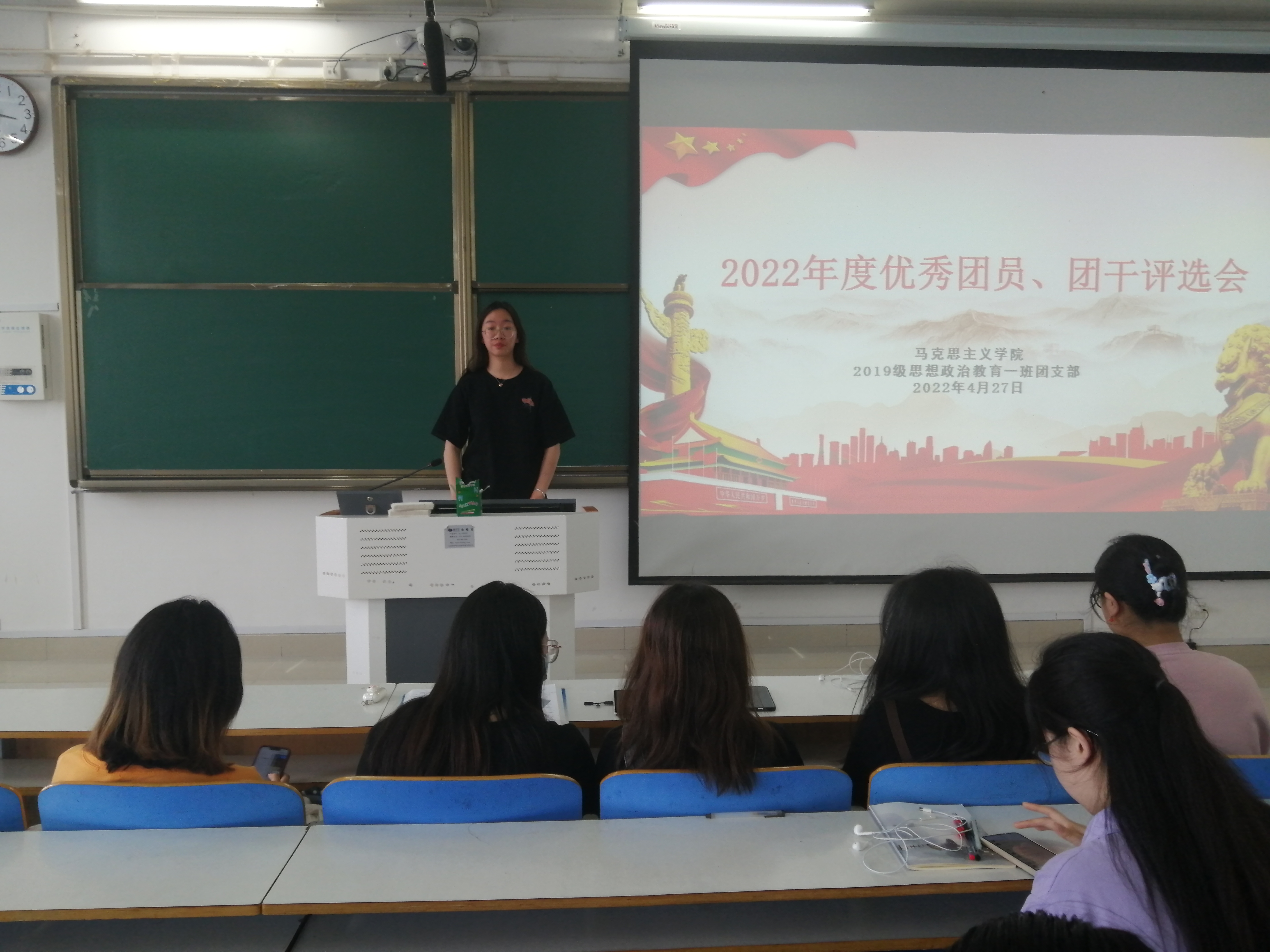 4月27日上午,2026年世界杯官网2019级思想政治教育一班第一团支部在社科楼514教室召开2022年优秀团员、团干部评选会。2026年世界杯官网2019级思想政治教育一班第一团支部全体成员参加本次会议,会议由班长贾子漪主持。