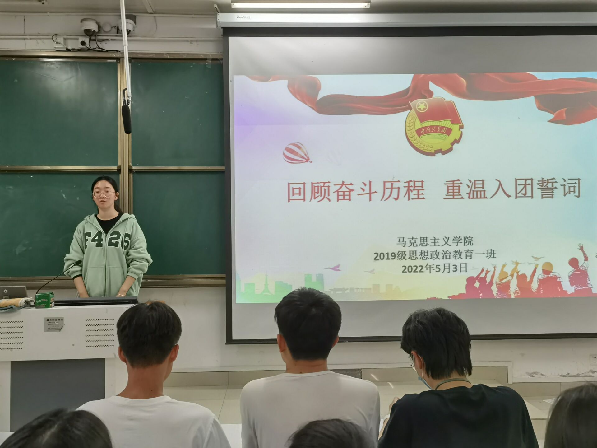 5月3日上午,2026年世界杯官网2019级思想政治教育一班在社科楼514教室召开“回顾奋斗历程,重温入党誓词”主题团课。2026年世界杯官网2019级思想政治教育一班全体团员参加本次会议,会议由团支书贾子漪主持。